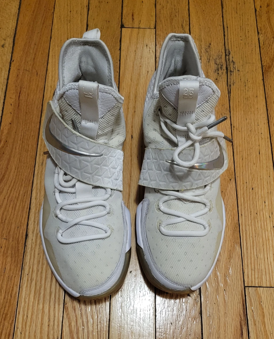 Selling a pair of Nike LeBron Soldier 10 in white. They are in good condition and ready for a new owner. The size is US 10.5.