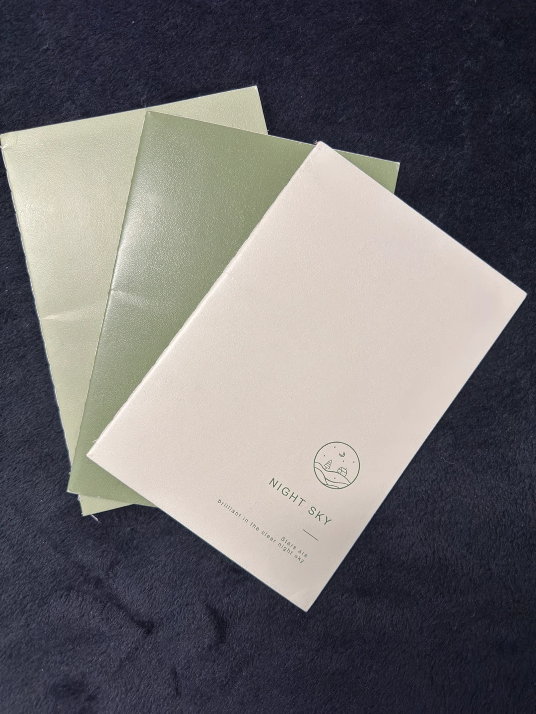 Set of three lined notebooks with a 'Night Sky' design. These notebooks are great for jotting down notes or journaling. Each notebook features lined pages and a durable cover.