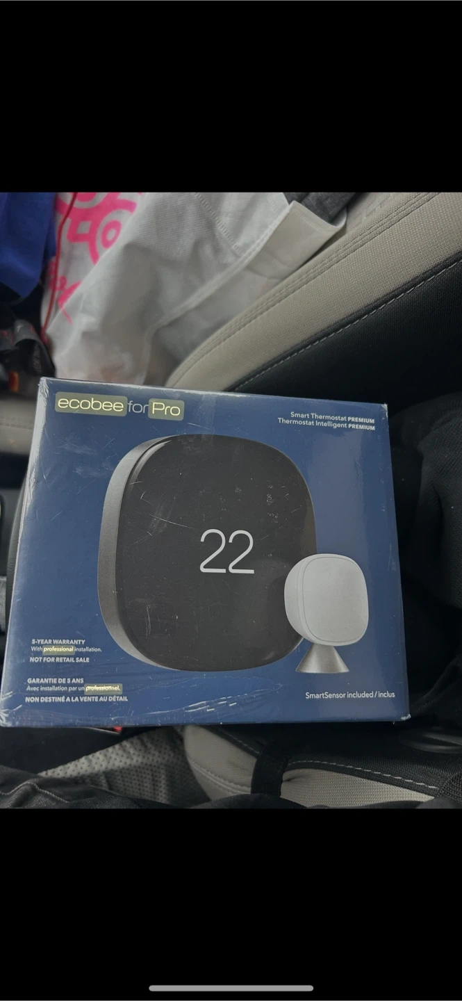 This is an Ecobee for Pro Smart Thermostat Premium. It's designed for professional installation and comes with a SmartSensor. It offers a 5-year warranty with professional installation. This unit is not for retail sale.