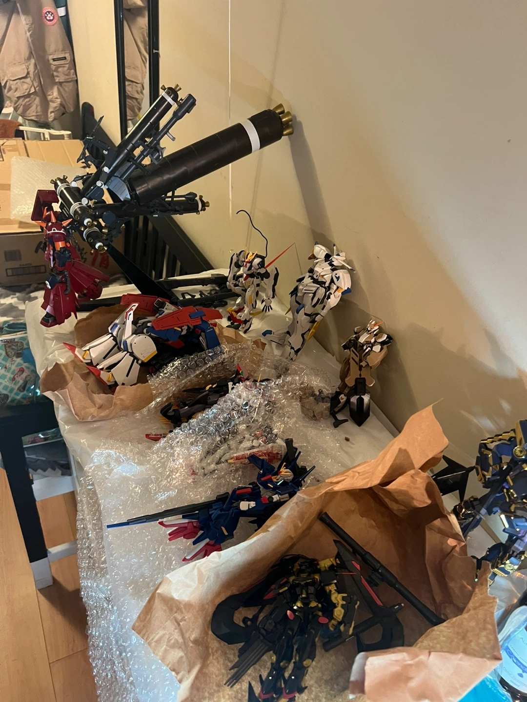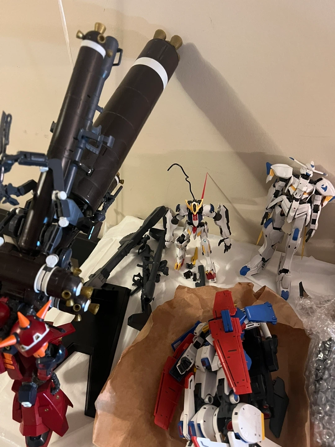 Selling a collection of Gundam model kits. They're partially assembled and in good condition. Perfect for any Gundam enthusiast looking for a project! Totally 10 items.