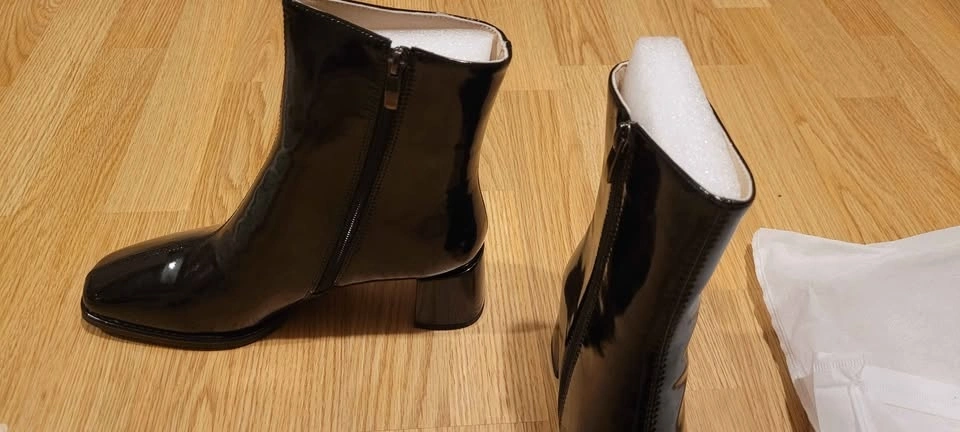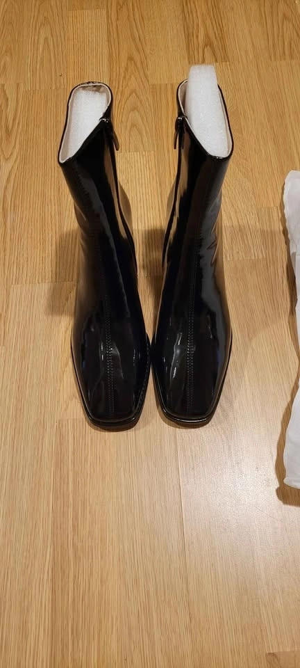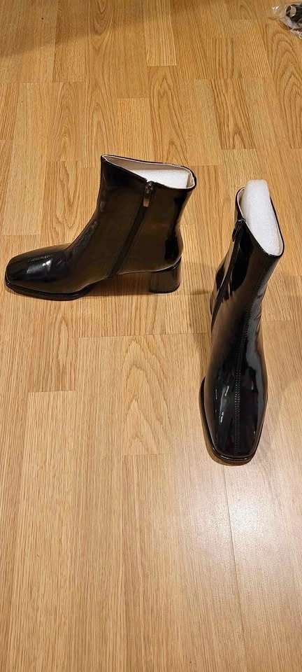Step into elegance with these stunning, handmade boots from Italy. Designed for both comfort and style, these boots are a must-have for any wardrobe. Featuring a sleek black finish and square toe, they are perfect for both casual and formal occasions. US 8.5-9.