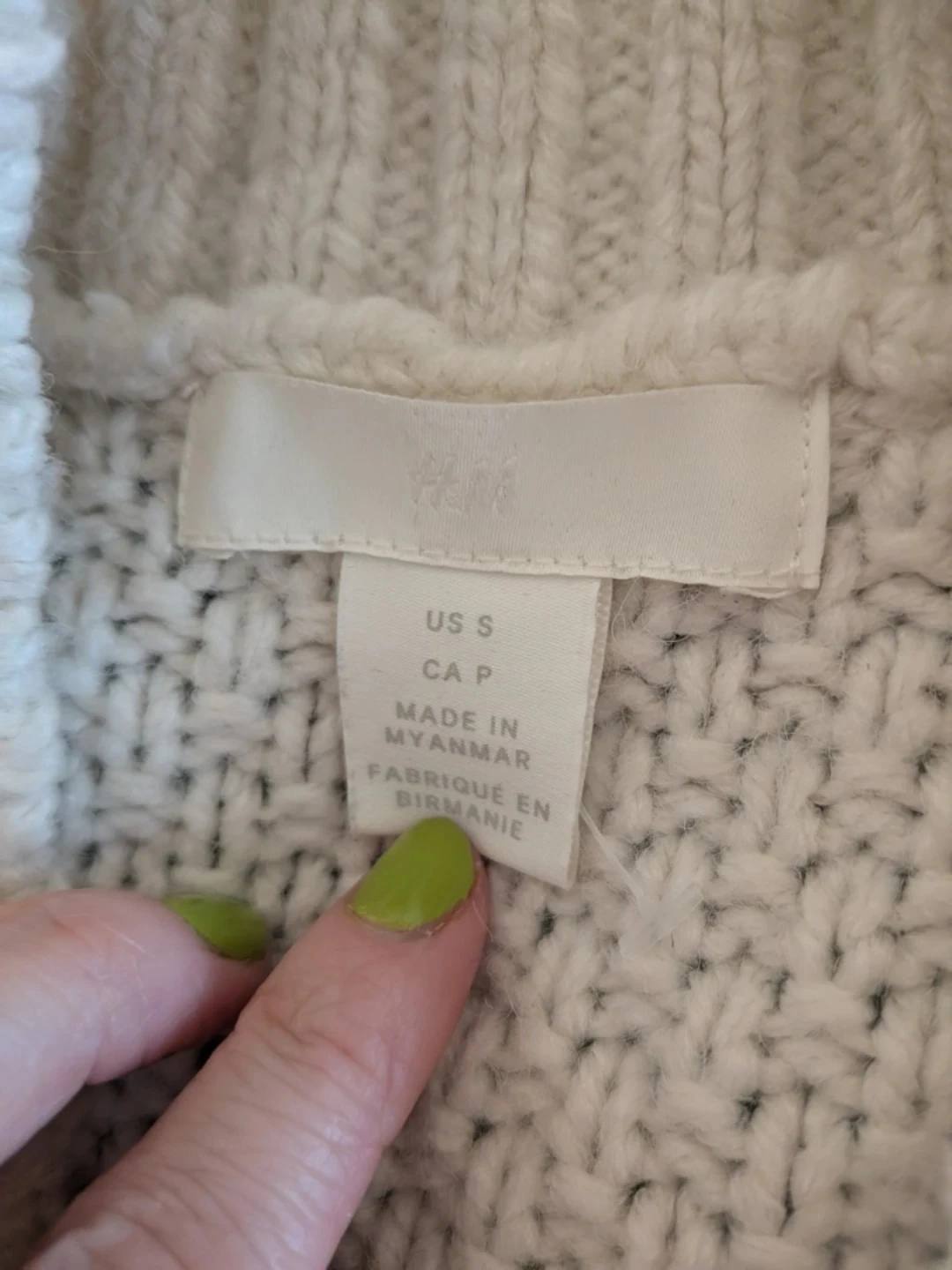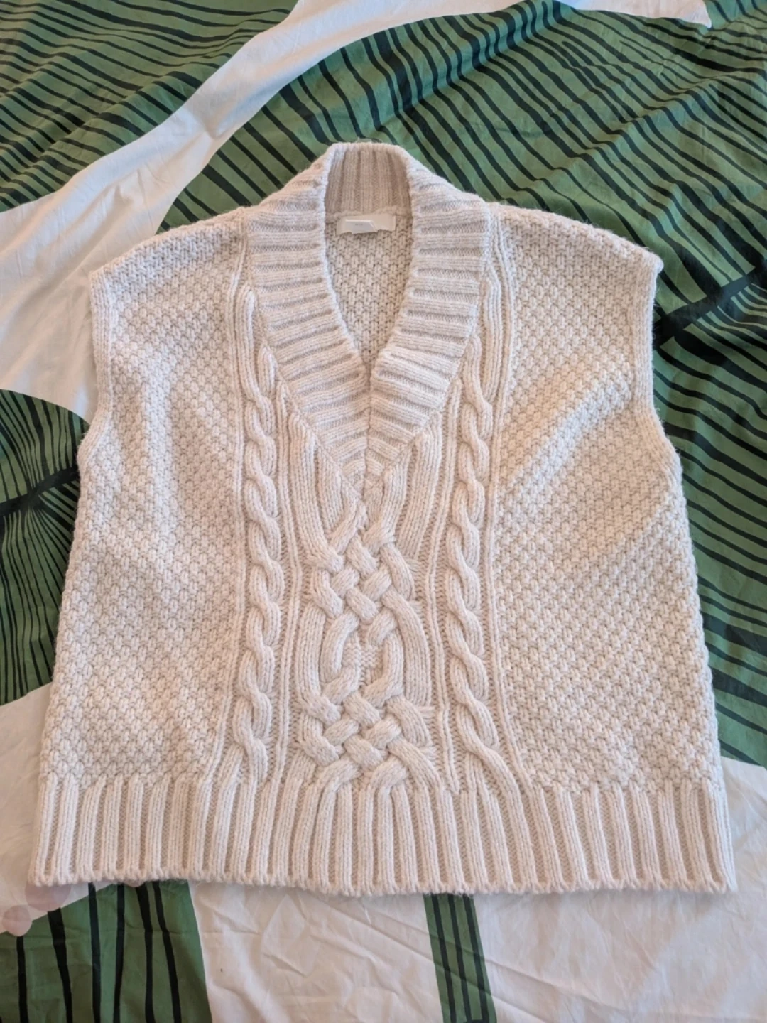 Buy & SellH&M Cream Cable Knit Sweater Vest Size SH&M Cream Cable Knit Sweater Vest Size S$10Cream coloured H&M sweater vest with a cable knit design. Oversized unisex boxy style. Pickup 73 McCaul st Toronto ConditionGoodSizesmallWHERE TO MEETCheck LocationView MapSELLERverifiedKirstieBaldwin Village1000+256 reviews0 chats·0 favorites·6 viewsSEND CHAT TO SELLERHi Kirstie! I’m interested in your listing.Hi Kirstie! I’m interested in your listing.Get the Karrot app to chatSign In to chat