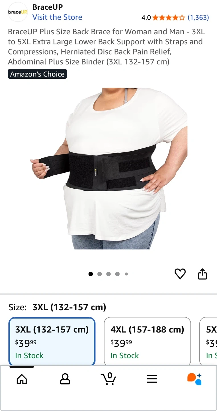 I'm selling a BraceUP Plus Size Back Brace, perfect for providing extra lower back support. It's designed for both women and men, in sizes 3xl. It comes with straps and compressions, offering relief from herniated disc back pain and abdominal support. This is a plus size binder, sized 3XL