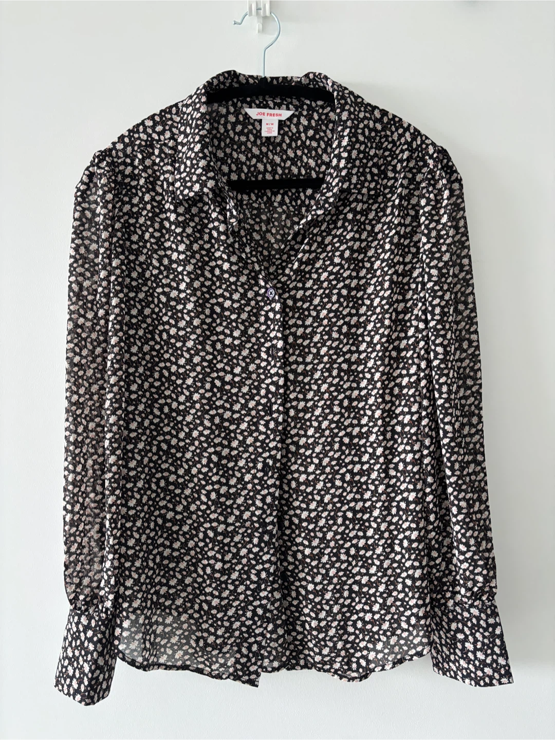 Floral print button up shirt. The fabric is lightweight and slightly sheer. Like new!