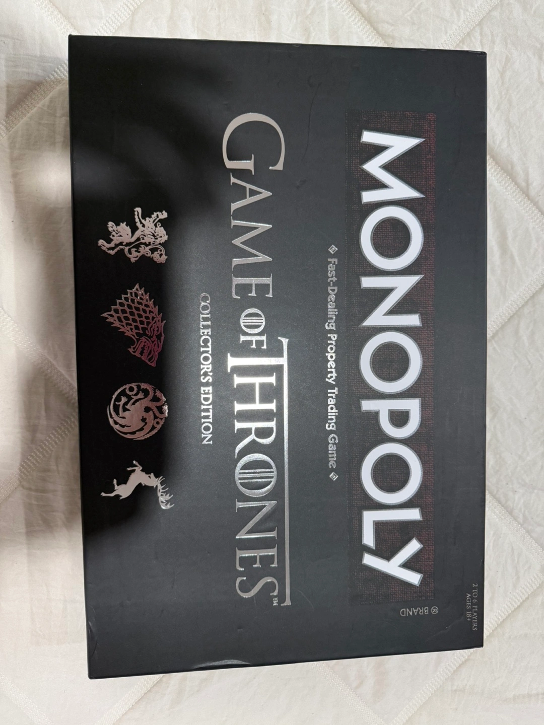 Game of Thrones themed Monopoly. Collector's edition. Includes game board, playing pieces, cards, and money.