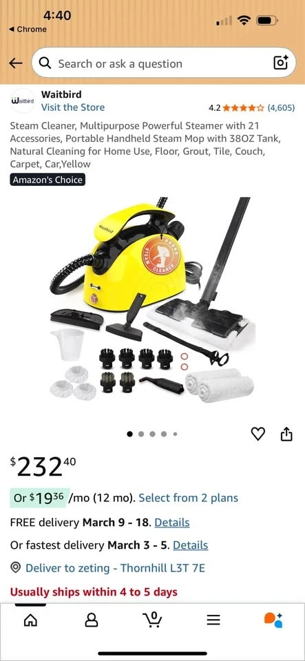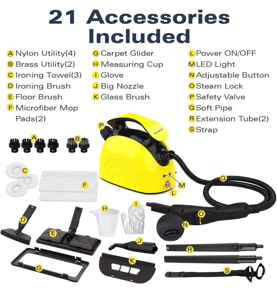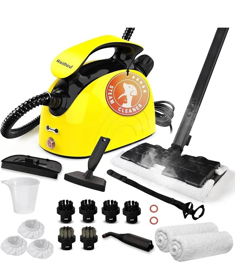 Brand New, all accessories are unused. Waitbird Steam Cleaner, Multipurpose Powerful Steamer with 21 Accessories, Portable Handheld Steam Mop with 38OZ Tank, Natural Cleaning for Home Use, Floor, Grout, Tile, Couch, Carpet, Car, Yellow. Brand: Waitbird. Special features: Carry Handle, Child Lock, Compact Design, High Pressure, Rapid Heat Up. Surface recommendation: Multiple surfaces. Model name: Waitbird Steam Cleaner. Wattage: 1100. CHEMICAL FREE STEAM CLEANING: The steam cleaner can deep clean naturally without harsh chemicals. The ability to produce high-temp steam up to 248℉, thorough cleaning and disinfection. ALL NATURAL STEAM CLEANING: The Steam cleaner uses only water and is capable of producing high-temperature steam up to 248℉, making it an eco-friendly and natural way to clean. It's ideal for individuals who prefer a natural approach to a healthier living environment. LARGE CAPACITY TANK: The steam cleaner with a 38oz water tank heats up in under 5 minutes and provides up to 45 minutes of high-temp steam for continuous sterilizing and descale. 21 VERSATILE ACCESSORIES: Includes 4 x Nylon Utility, 2 x Brass Utility, 3 x Ironing Towel, 2 x Microfiber Mop Pads, 2 x Extension Tube, 1 x Measuring Cup, 1 x Glove, 1 x Ironing Brush, 1× Shoulder Strap, 1 x Glass Brush, 1 x Big Nozzle, 1 x Floor Brush, 1 x Carpet Glider. Meet all your daily cleaning needs. EASY & SAFE TO USE: Hold on to the steam gun by hand and move the steam button ahead, steam will come out directly. If you need automatic steam without hand, just turn the steam lock to the right side when in use. Our steam cleaner has a built-in child safety lock, which is designed to protect children or pets from accidental injury. It will auto-shutdown if the steam pressure in the boiler is too high or there is no water in the tank. WIDE APPLICATION: Our steamer can be applied to every scene of your life, including ceramic tile, grout, granite, sealed wood flooring, laminate, appliances, kitchen range hood, windows, mirrors, grills, autos, and more. Providing an eco-friendly and safe cleaning solution for you and your family.