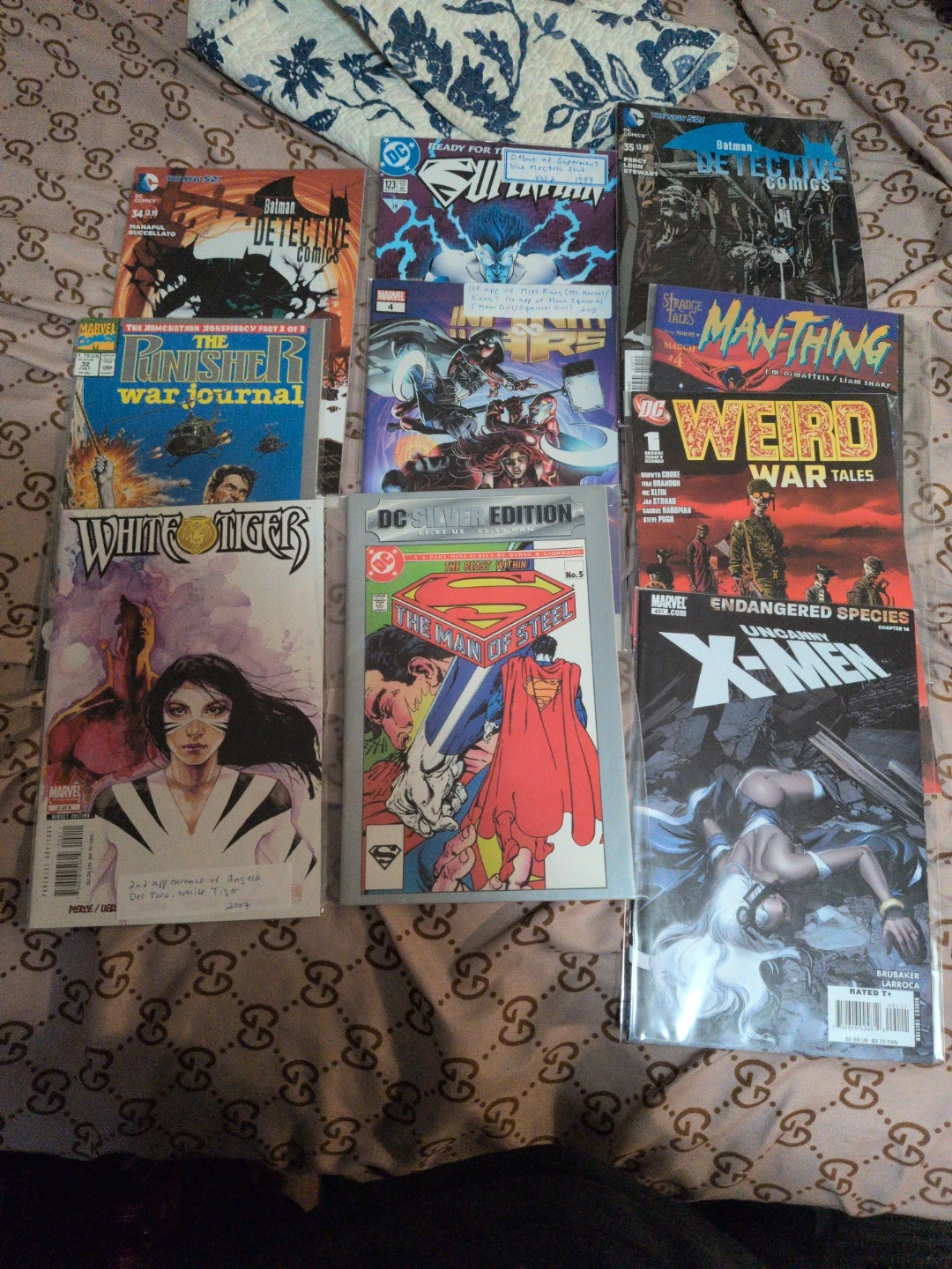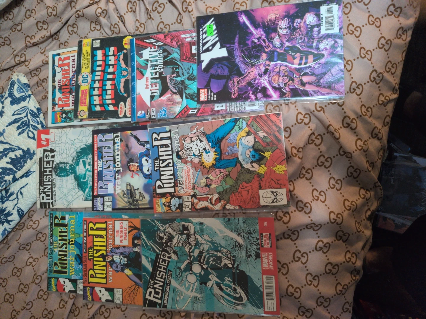 I have a mixed lot of comic books for sale, featuring characters from both DC and Marvel! There's a variety of titles including Punisher, Deathstroke, X-Men, Batman, and more. Great for collectors or anyone looking to start reading comics