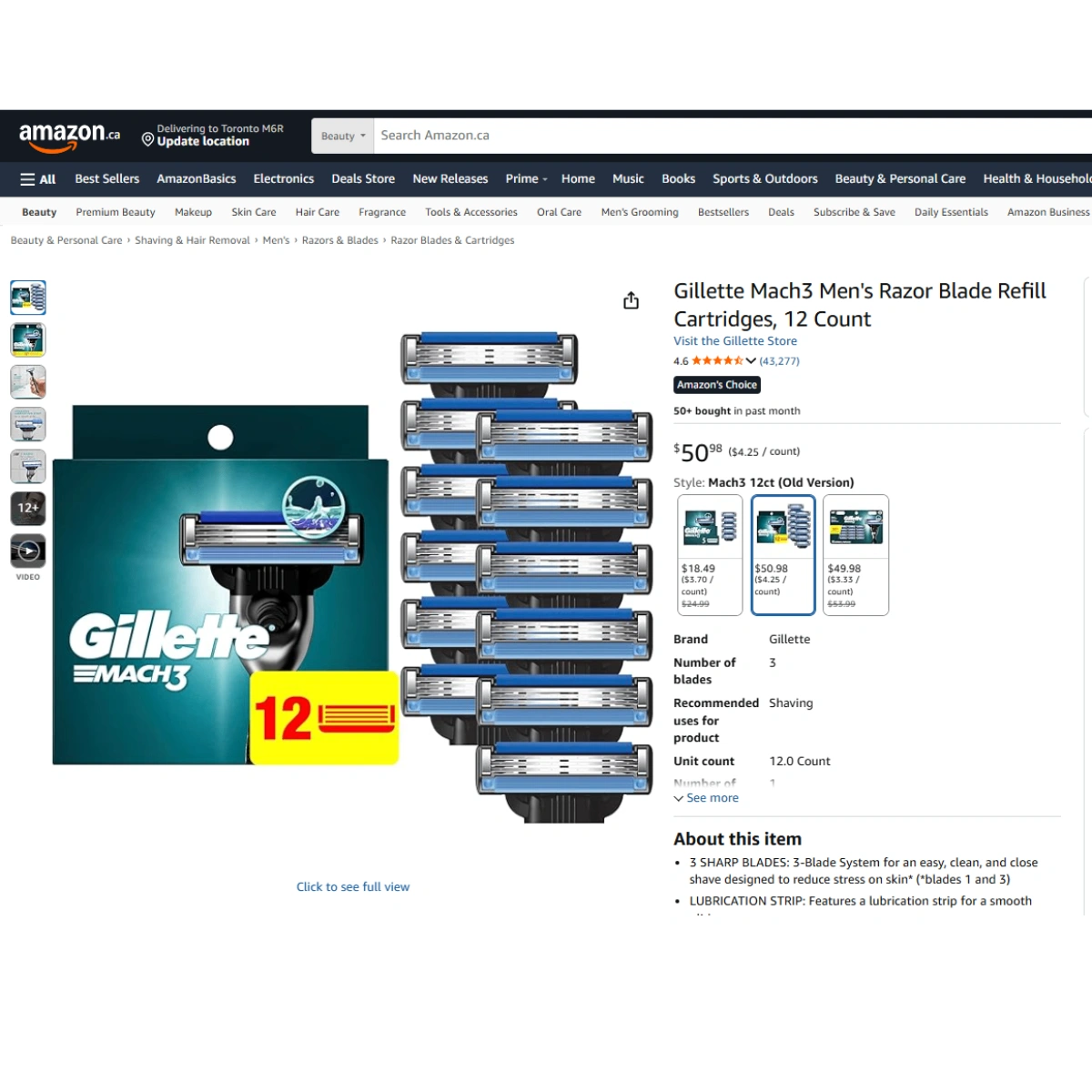RETAIL PRICE $56 inc tax-SEALED BRAND NEW SEALED BRAND NEW UNOPENED Gillette Mach3 Men's Razor Blade Refill Cartridges, 12 Count