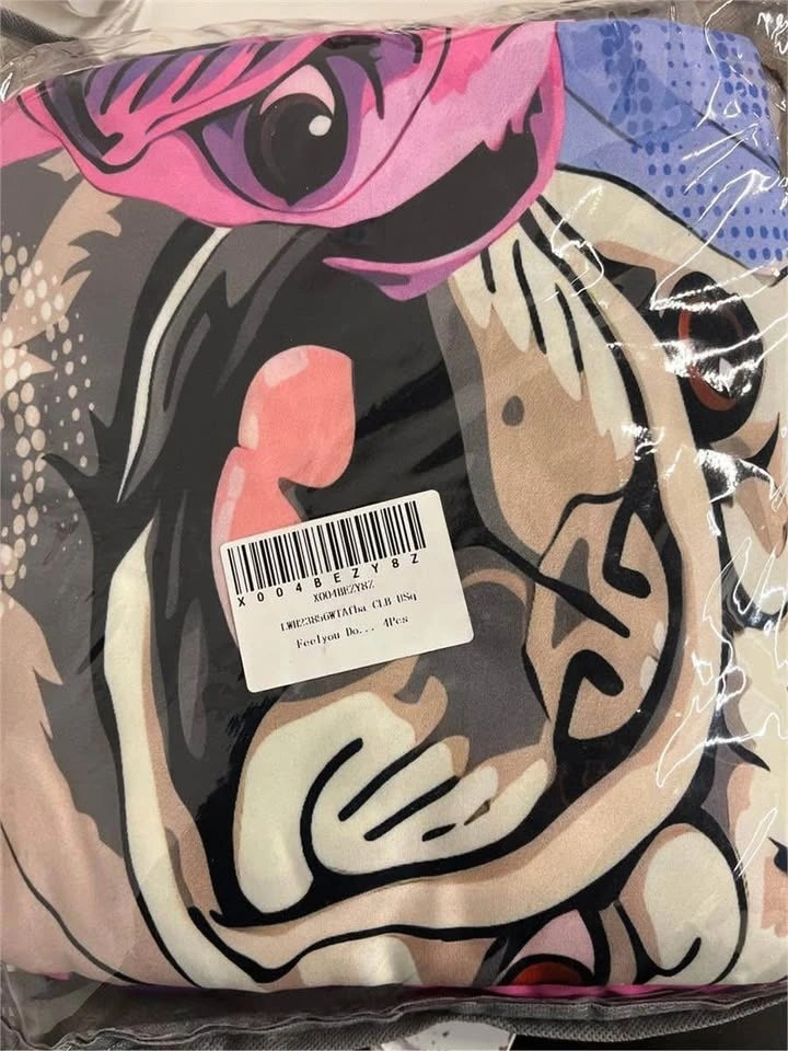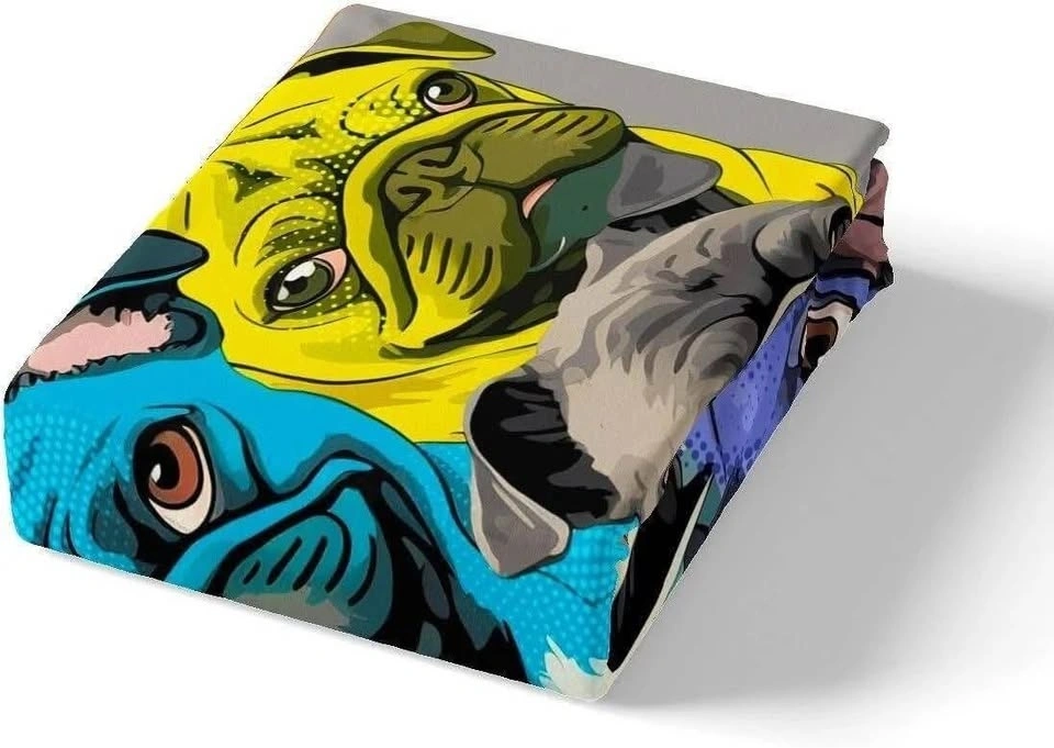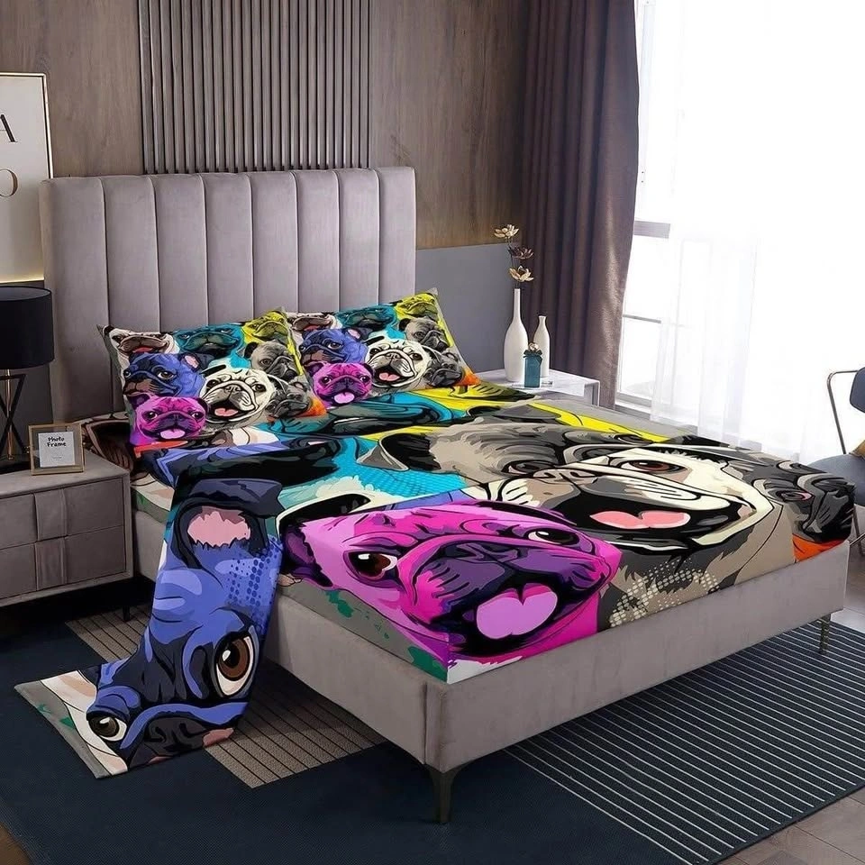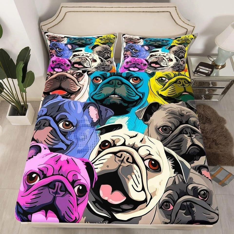 Feelyou Pug Printed Bed Sheet Set 4Pcs Queen