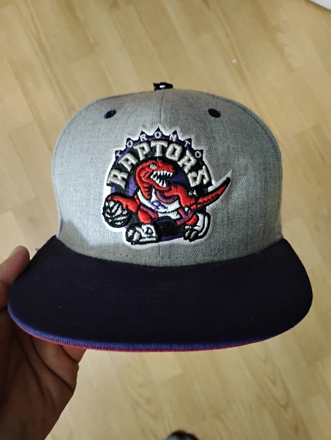 Grey Toronto Raptors 59FIFTY fitted hat. Features the classic Raptors logo. It's a size 7. Perfect for any Raptors fan!