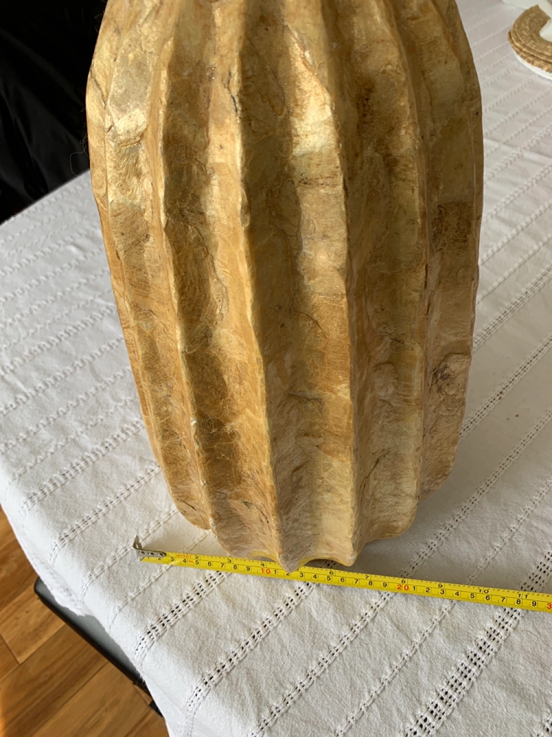Large Decorative Vase, Beige/Gold, Pleated Design