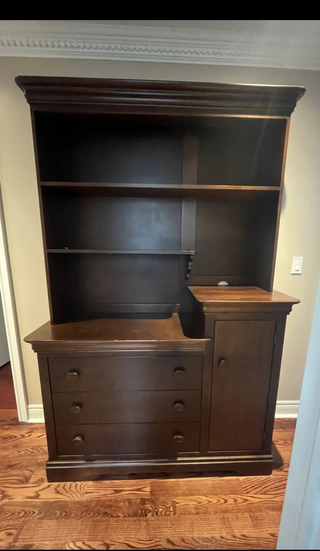 Gently used solid wood dresser and hutch combo, made in Canada. From a non-smoking home. Dimensions are 81” high x 52” wide x 18” deep. Firm on price. Pick up only please.
