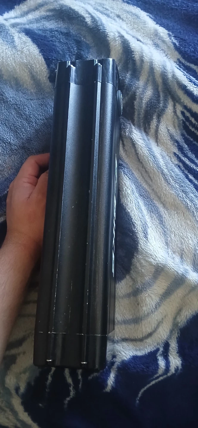 This is an E-BIKE Li-Ion battery pack. It's a black, rectangular battery for electric bikes. the casing is good, but you have to find the charger in the battery replace them and replace the the keyhole