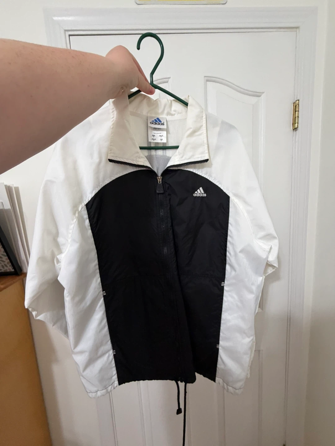 third picture (white windbreaker S): $75