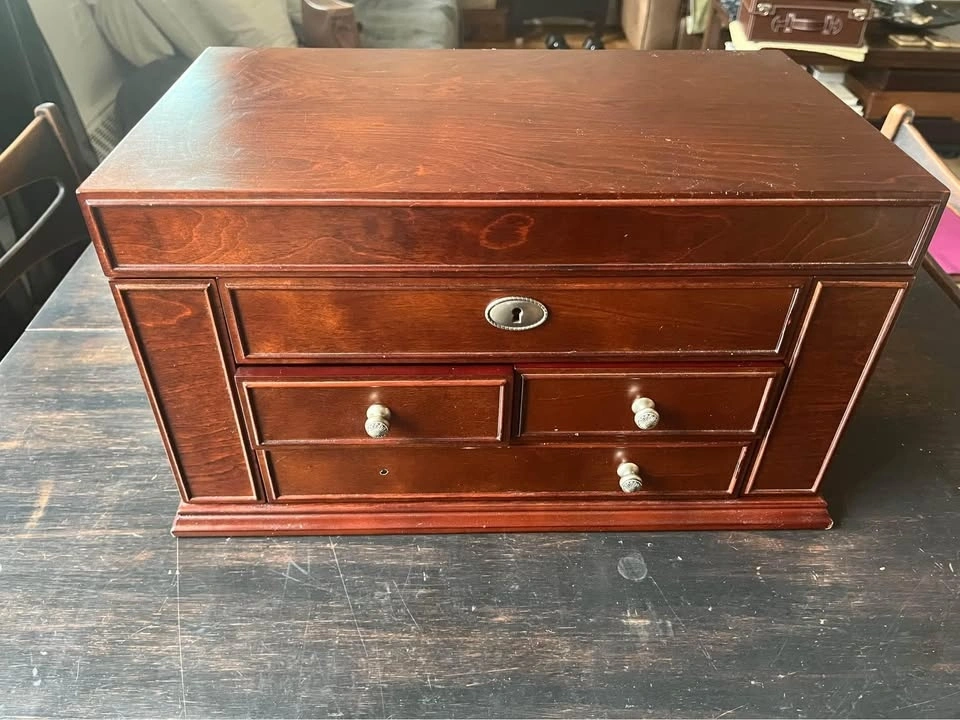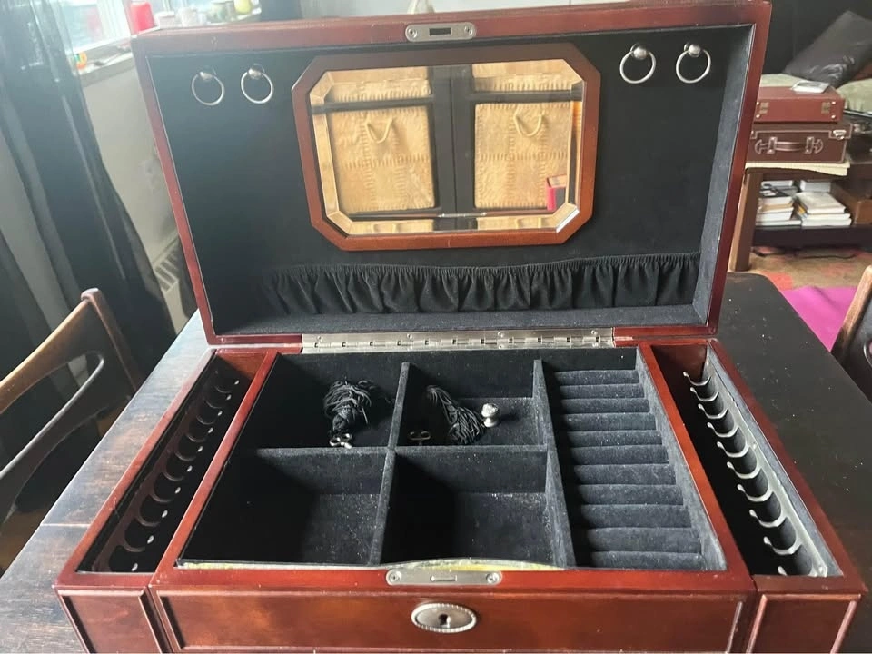 If you have jewelry, this is a good place to keep them. 18” wide, 10.5” high.