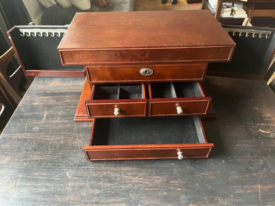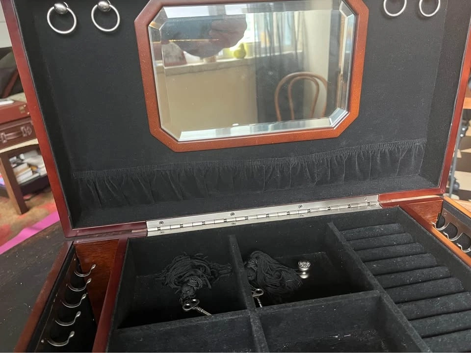 If you have jewelry, this is a good place to keep them. 18” wide, 10.5” high.