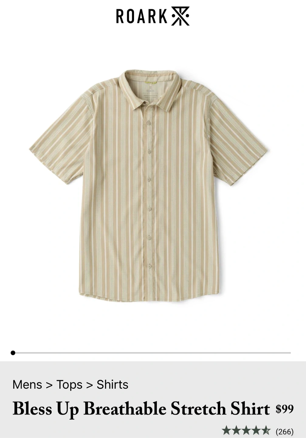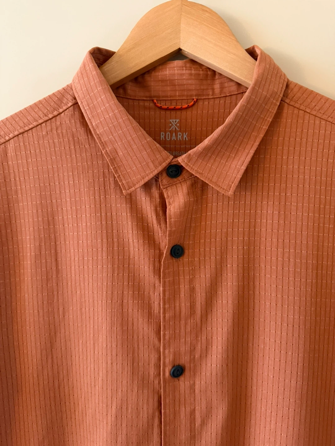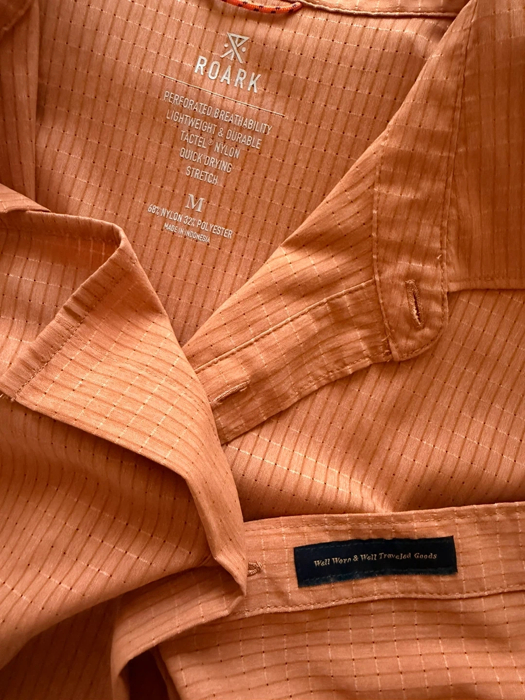The Bless Up is Roark’s all around, moisture wicking, mechanical stretch, perforated woven. The shirt’s Tactel fibers are lighter, softer and stronger than your everyday cotton woven providing a long lasting yet light & airy experience. Size Medium. Fits true to size.