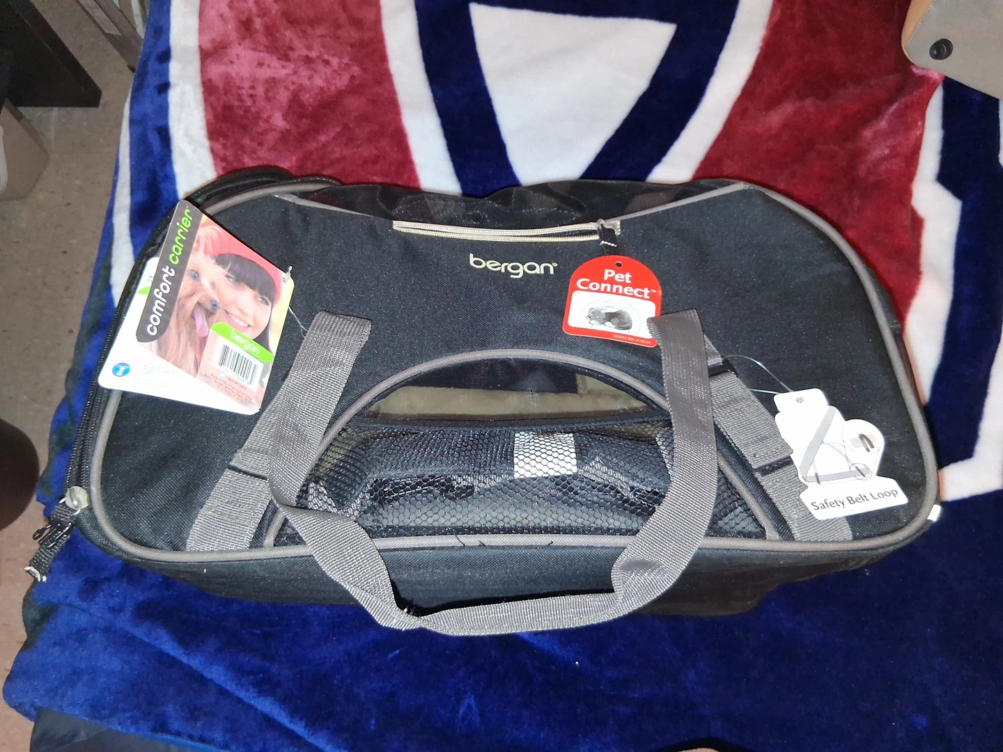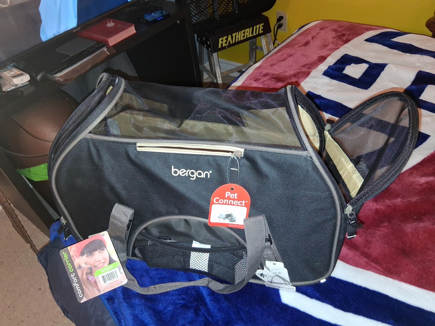 I am selling a Brand New Bergan Comfort Pet Carrier Bag Airline Approved Small Dog/Cat for $40.00. It also come with shoulder strap. It is Brand New and Never Used and the colour is Black