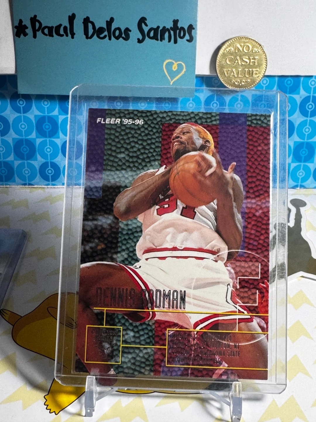 Collection of Dennis Rodman basketball cards featuring NBA Hoops and Fleer brands. Includes cards from the '95-'96 season. These cards are great for any basketball fan's collection!