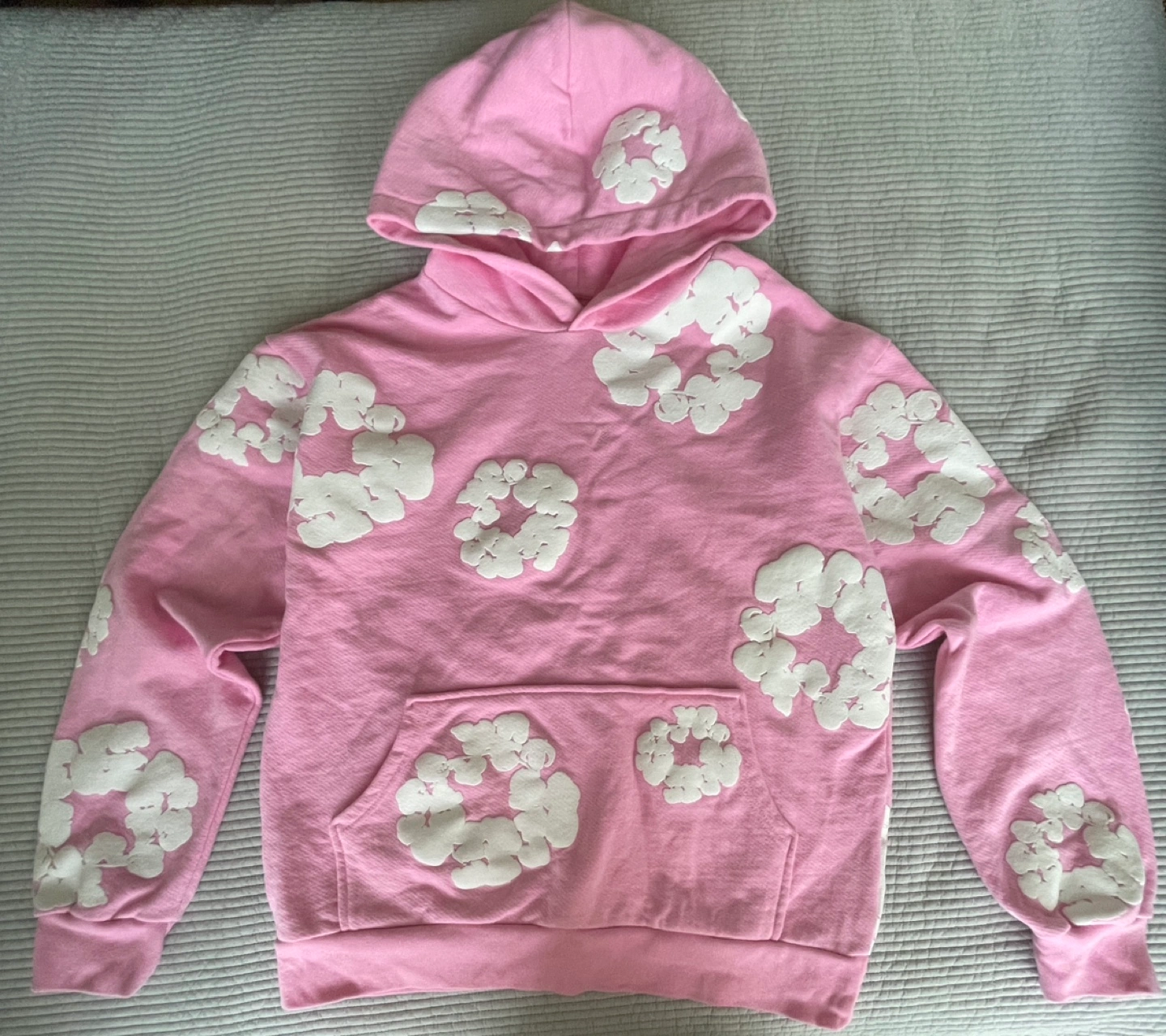 Pink hoodie. Features white flower pattern. Size small. It is 1:1 tags and puff print checks out dm me if u have any questions.