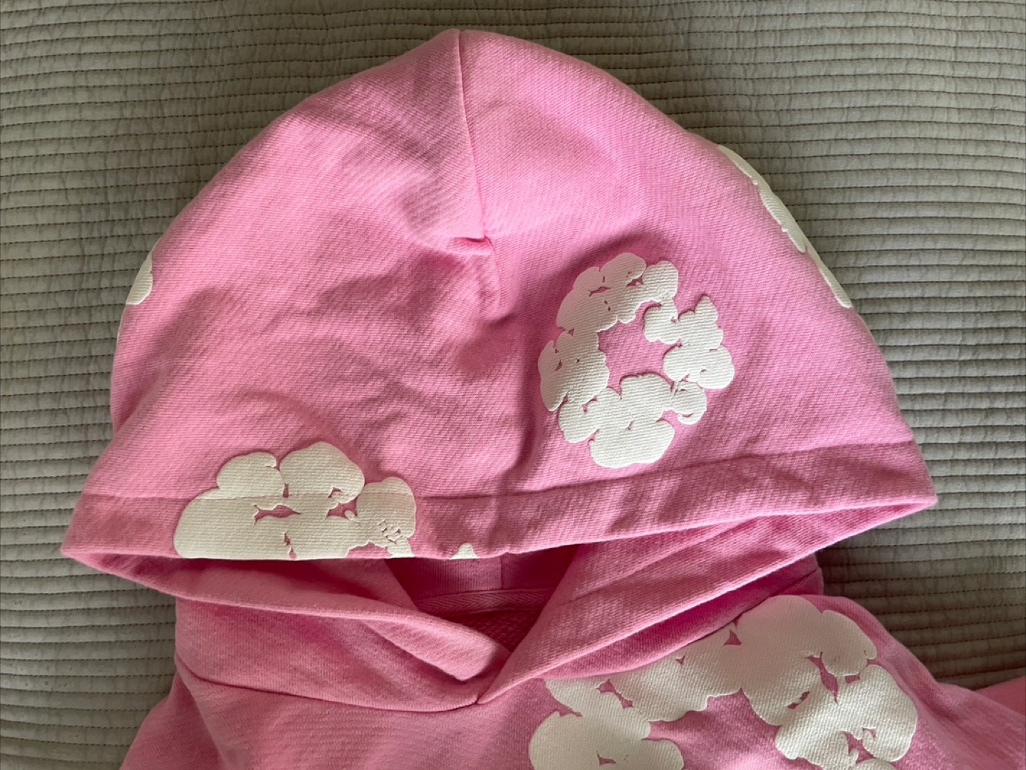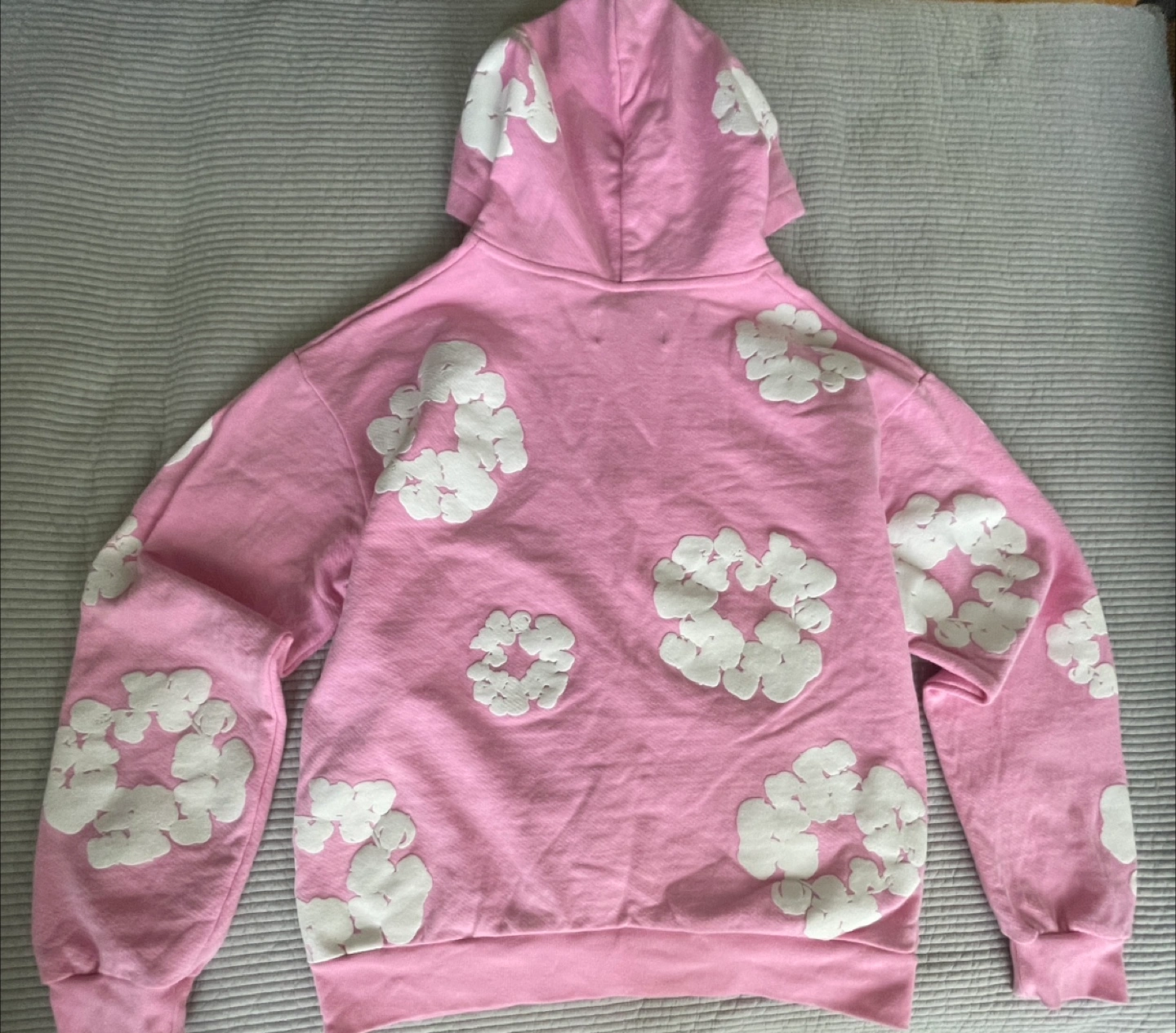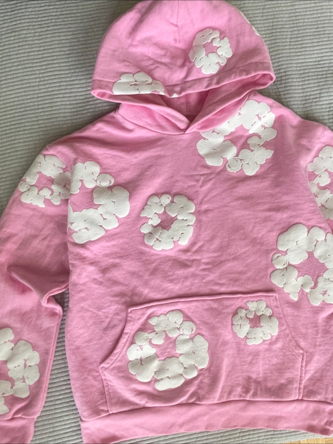Pink hoodie. Features white flower pattern. Size small. It is 1:1 tags and puff print checks out dm me if u have any questions.
