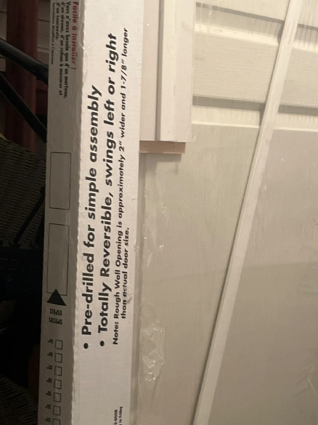 Selling a brand new Easton Insta-Forte door still in its original packaging! It's pre-drilled for simple assembly and can swing left or right. All you need is a hammer, level, tape, and screwdriver to install it. Rough wall opening is approximately 2" wider and 1-7/8" longer than the actual door size