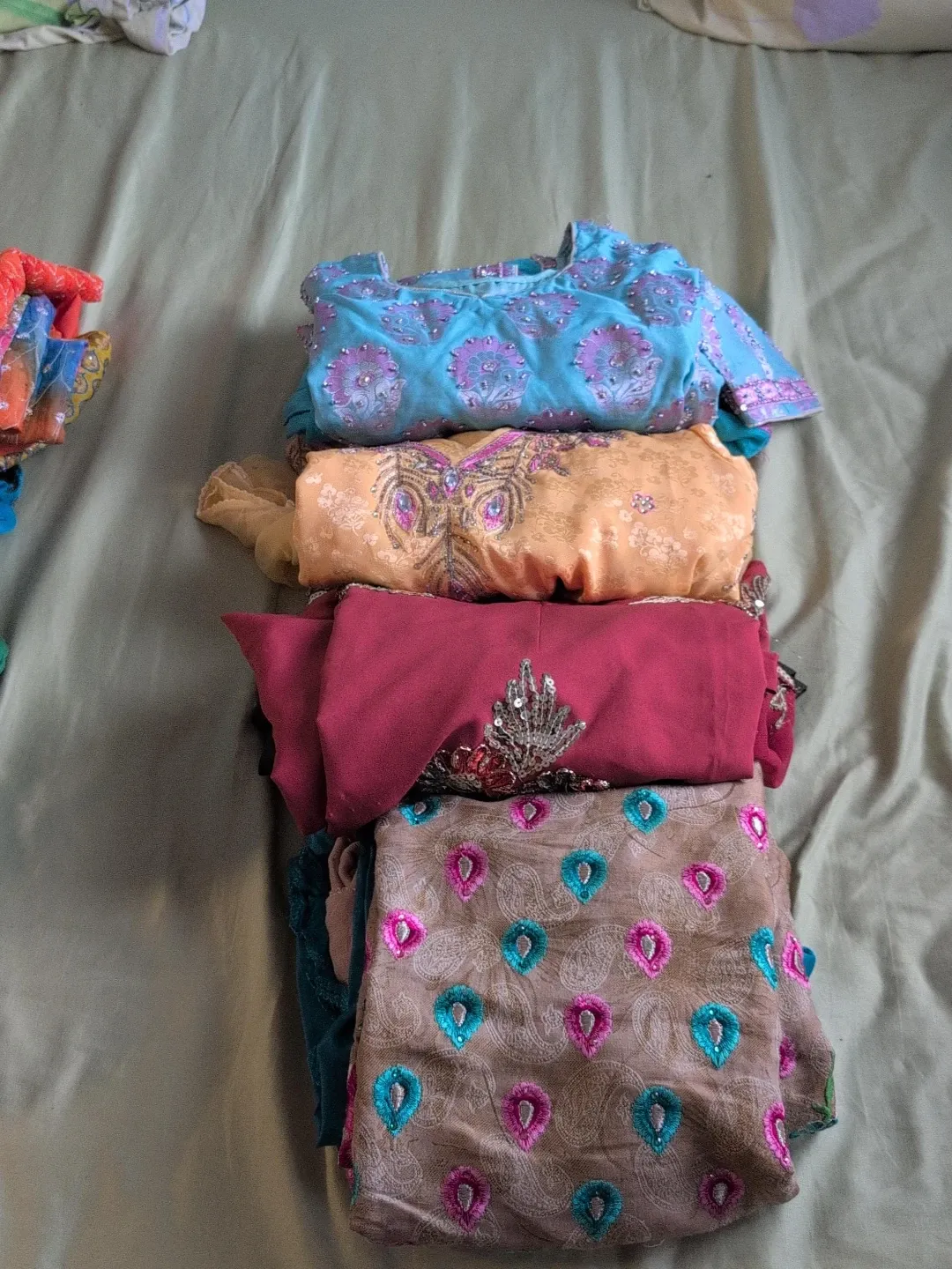 Four beautiful kurti tops with intricate embroidery. Features bead and sequin embellishments. Great for casual or festive wear!