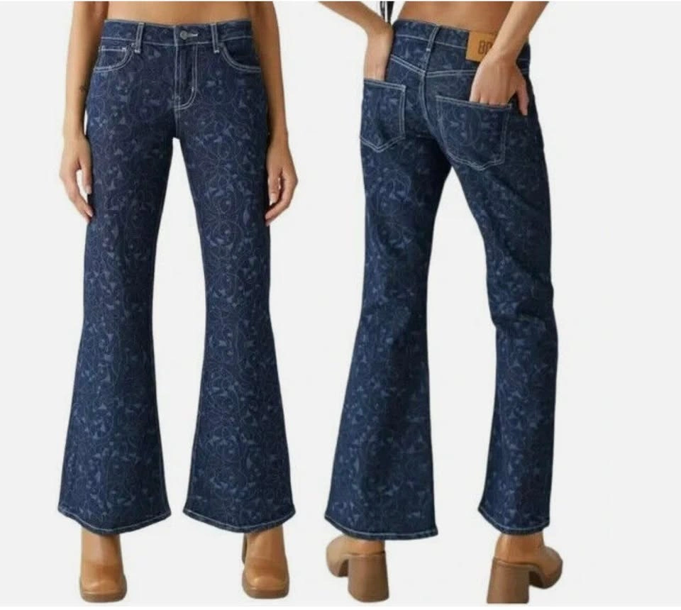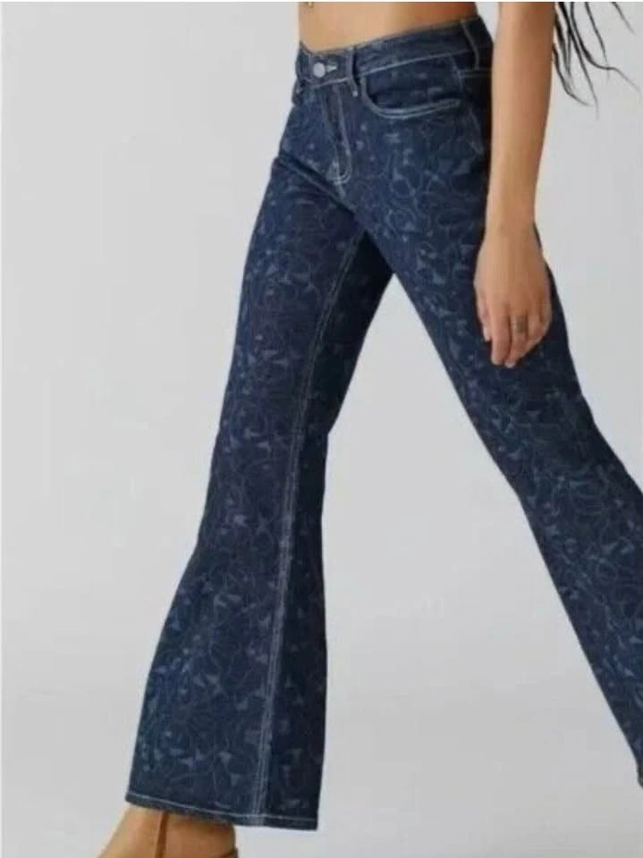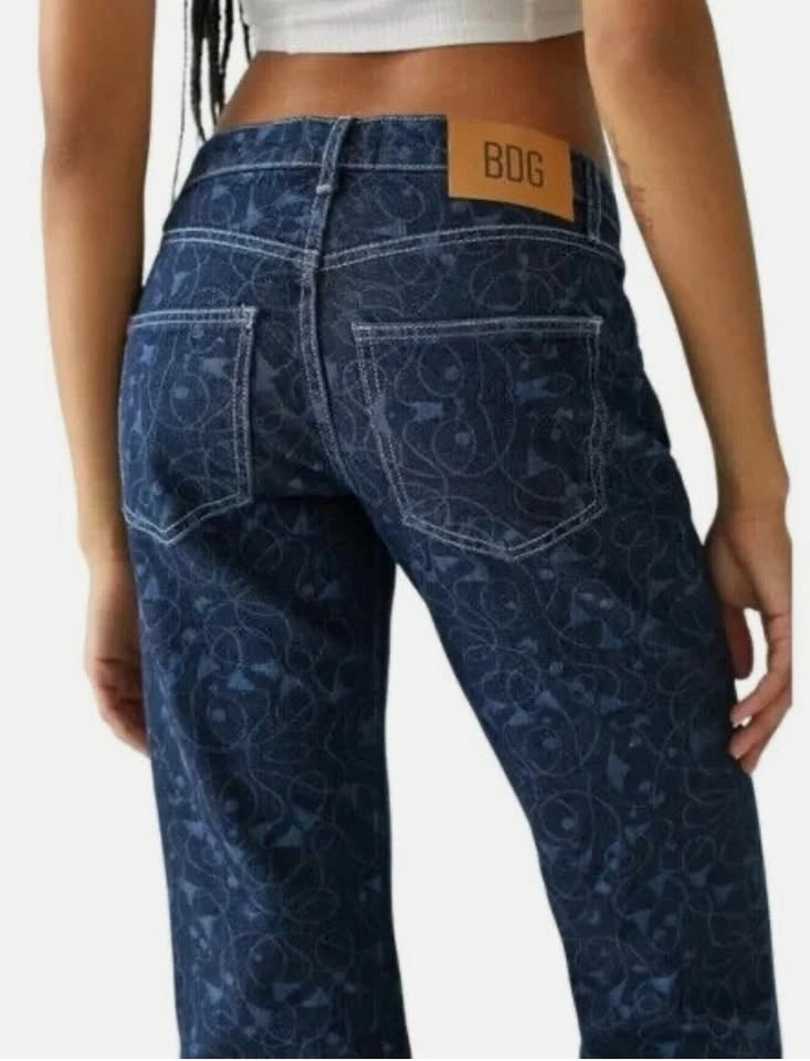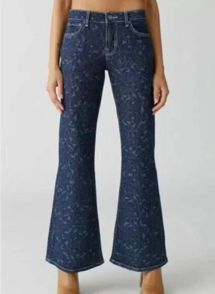 93Blue denim with a floral pattern. Size 24. BDG Low Rise Flare Jeans from Urban Outfitters. Never worn. Brand New only washed before packed into closet. Open to offers. Fits like the picture with the model but printed.