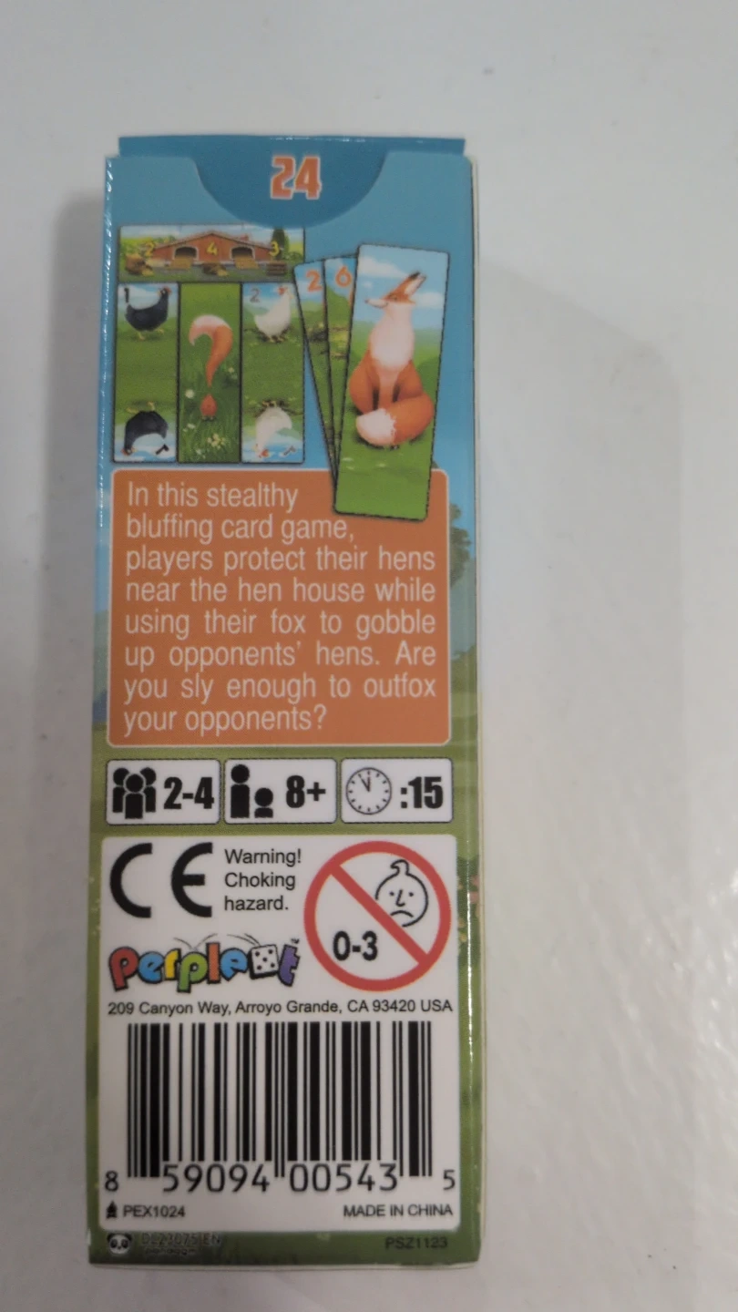 Selling a Sly card game! It's a stealthy bluffing game where players protect their hens near the hen house while using their fox to gobble up opponents' hens. Suitable for 2-4 players and ages 8+