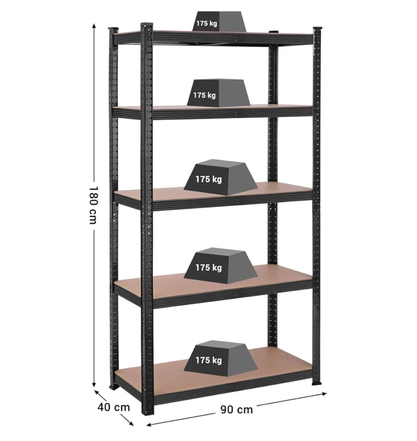 5-Tier Heavy Duty Shelving Unit - 90cm x 40cm x 180cm