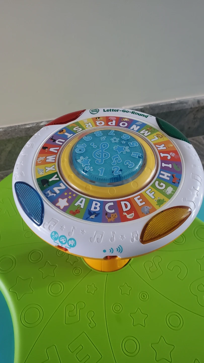 This LeapFrog Letter-Go-Round activity toy is designed to help little ones learn their letters and numbers. It spins and plays music, offering interactive fun. It's suitable for toddlers learning to sit up and explore.