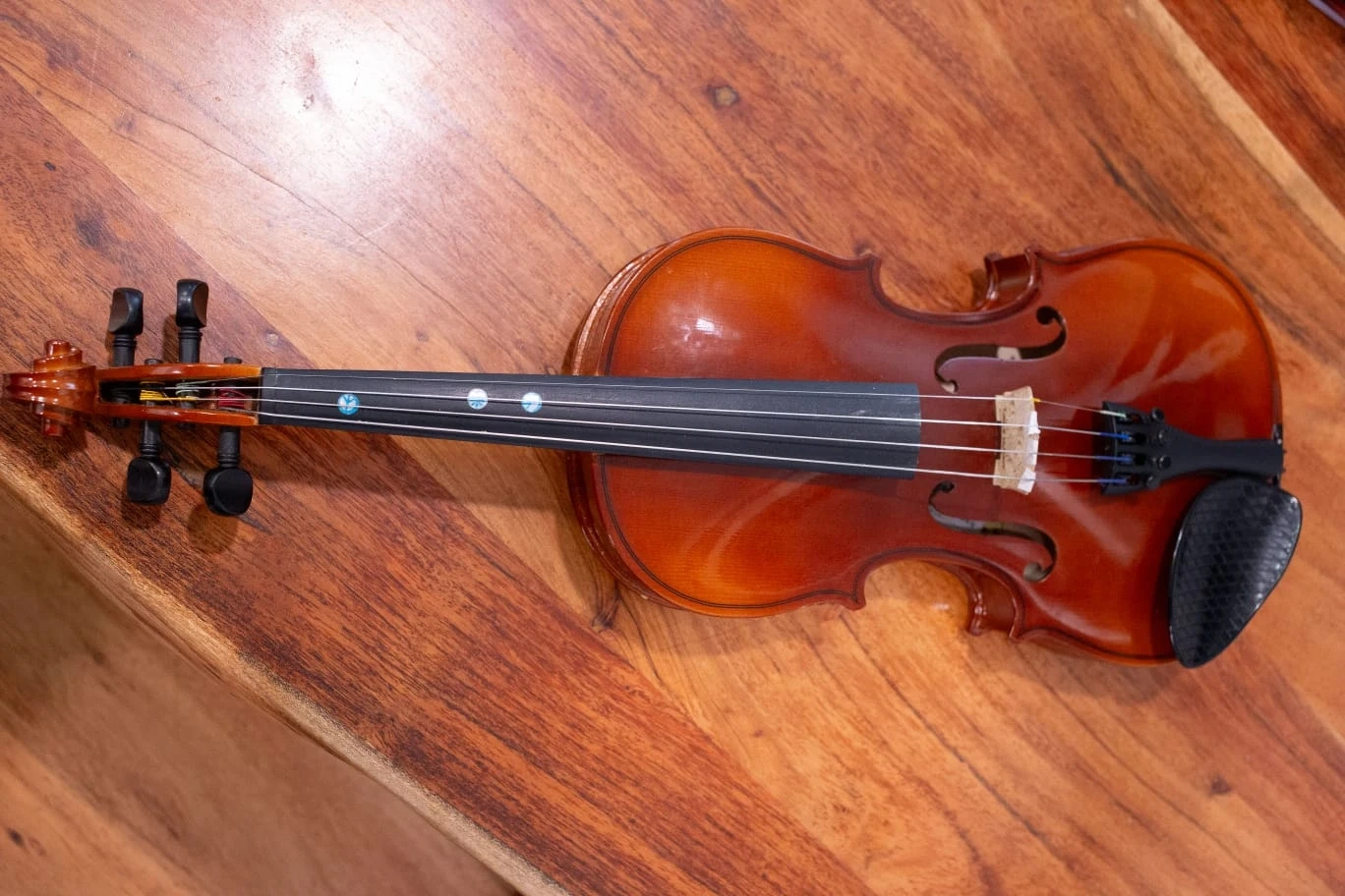 Awesome quality 1/2 violin made in Czech Republic. This is a violin that comes with a hard protective case (made in Canada), chin rest and a bow. It's suitable for beginner or intermediate players. The violin has a polished wooden finish and four strings. Purchased from Long & McQuade but we have sized up so looking to sell. In great condition.