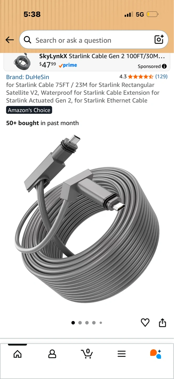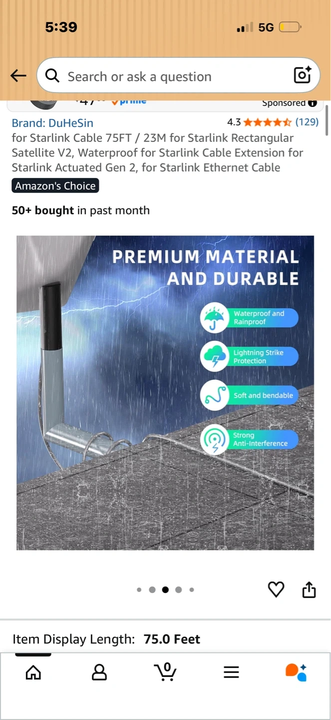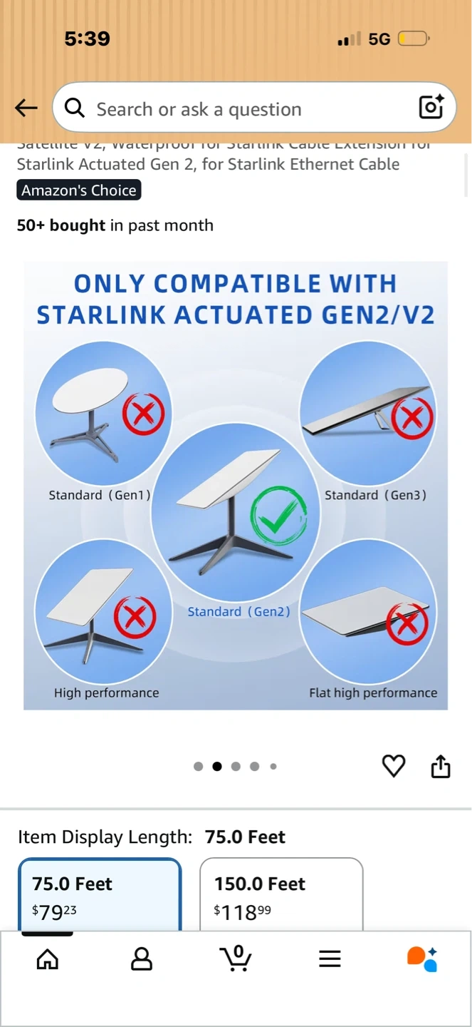 This is a 75-foot Starlink cable extension for Satellite V2, compatible with Starlink Actuated Gen 2. It's waterproof and built with a metal shielded layer and anti-aging rubber. Max transmission speed is up to 1200Mbps.