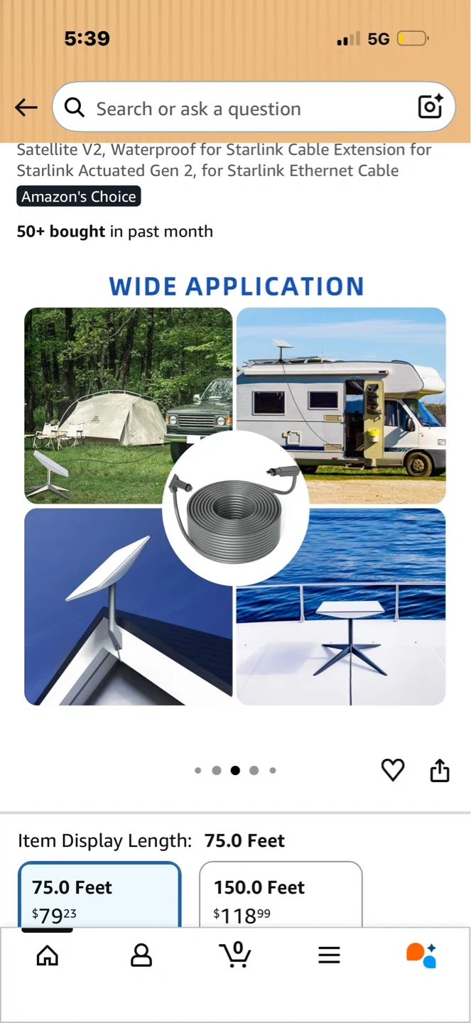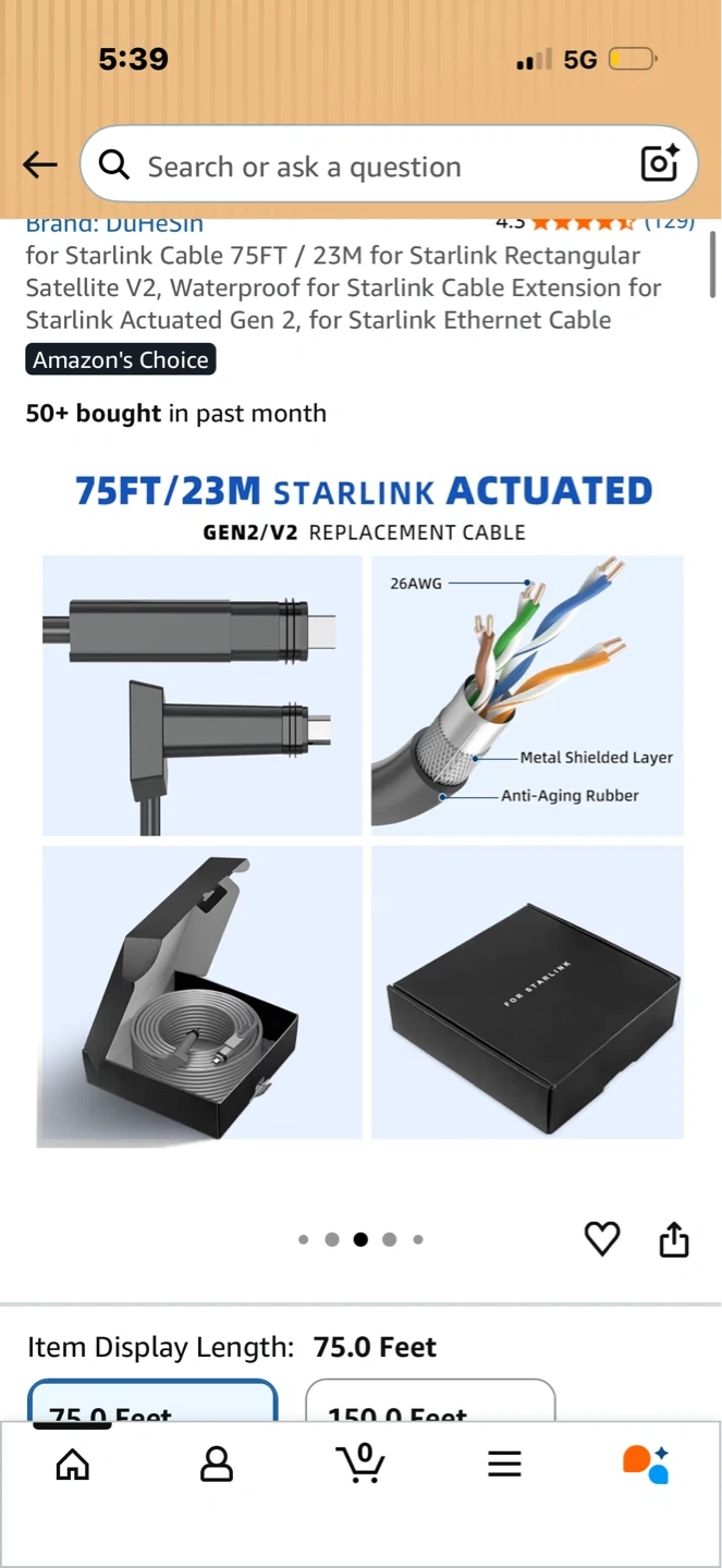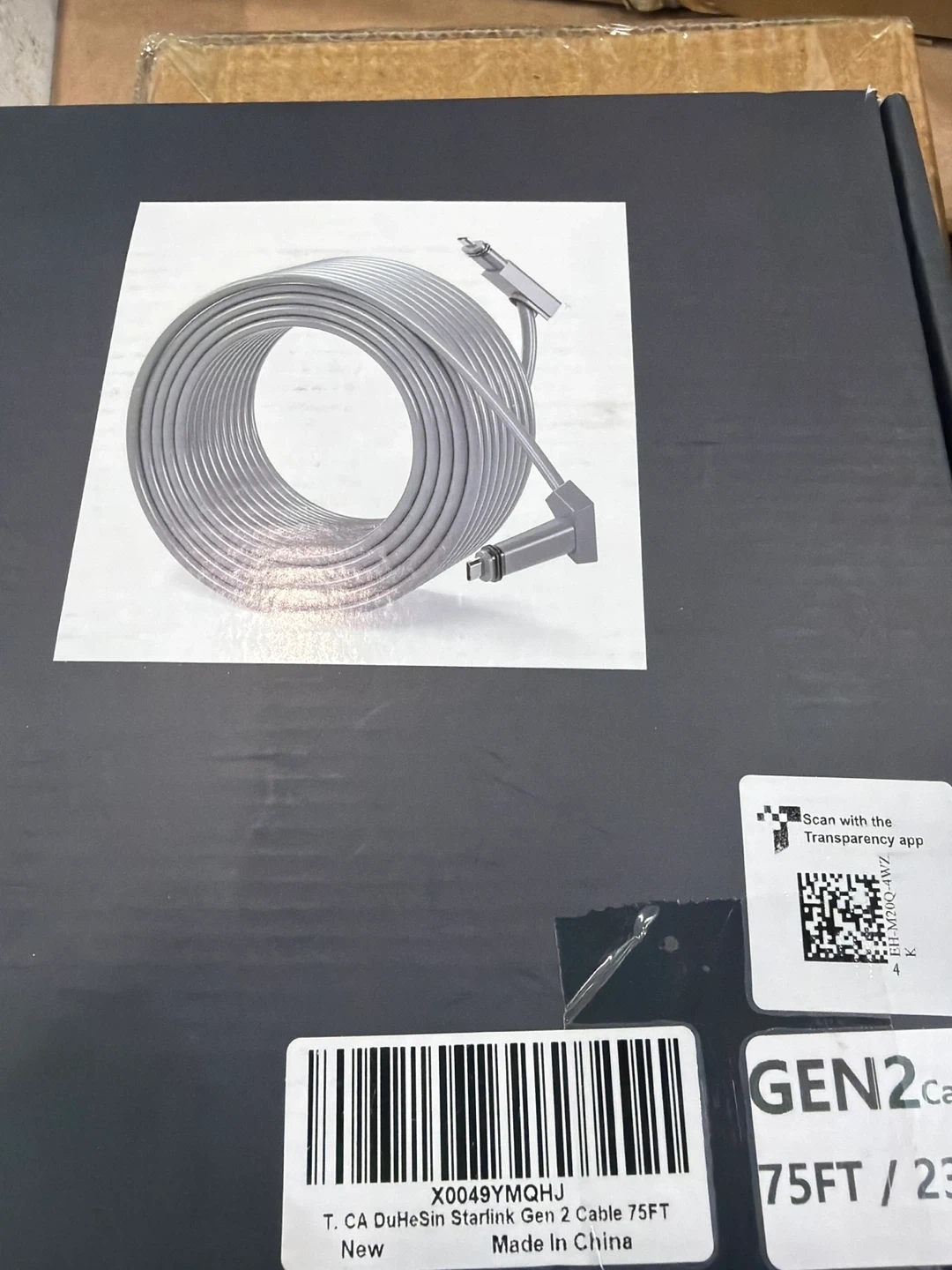 This is a 75-foot Starlink cable extension for Satellite V2, compatible with Starlink Actuated Gen 2. It's waterproof and built with a metal shielded layer and anti-aging rubber. Max transmission speed is up to 1200Mbps.