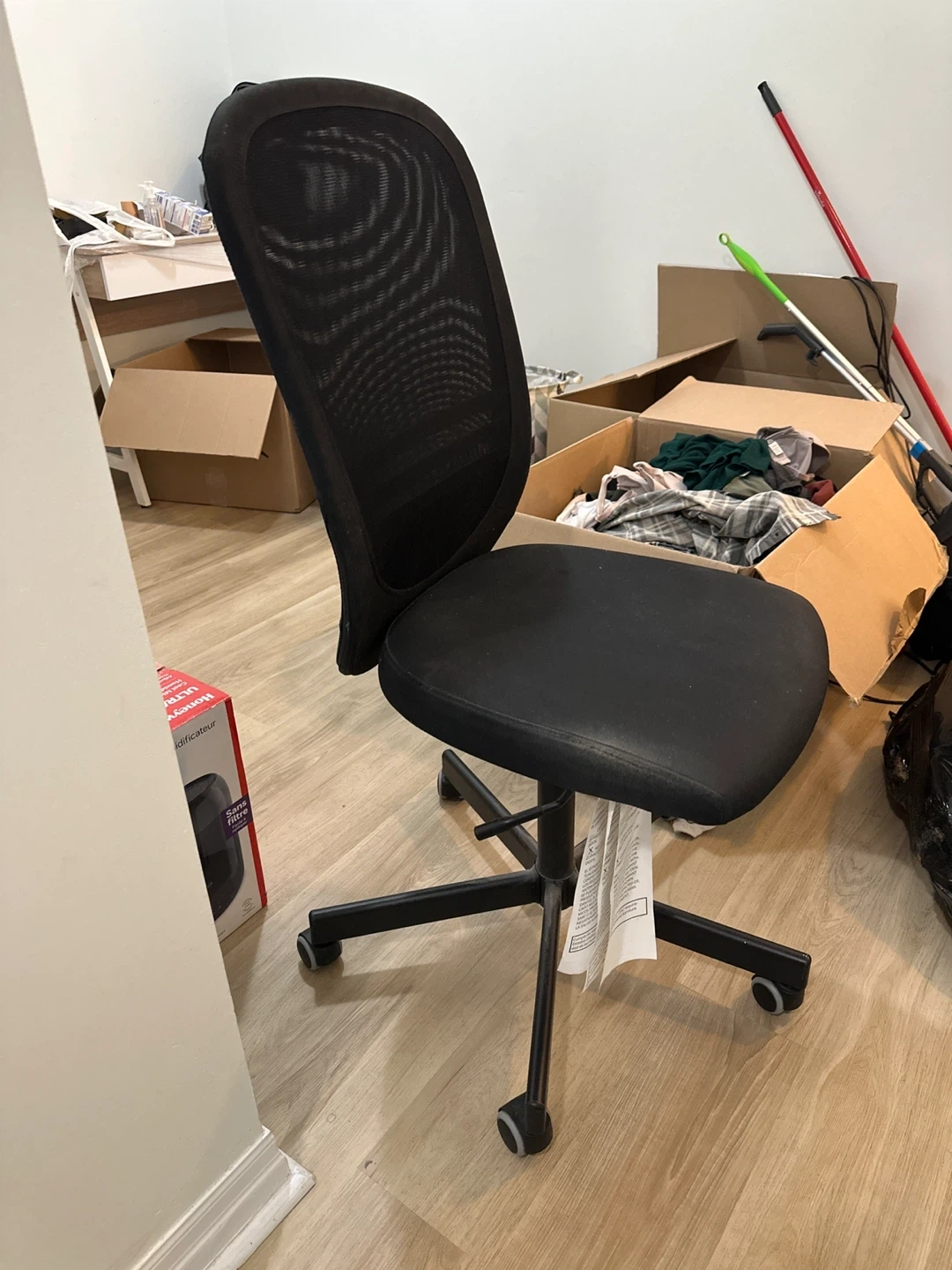 Selling a comfortable black mesh office chair. It's in good condition and perfect for working from home or studying. The mesh back provides great support and breathability. The seat is also padded for extra comfort