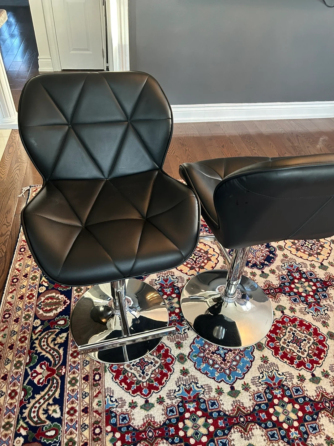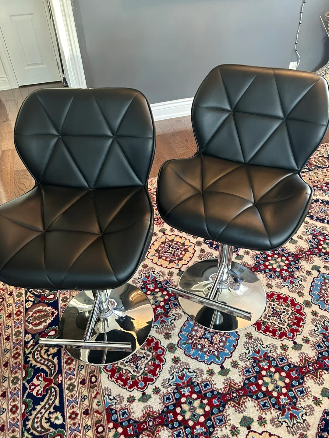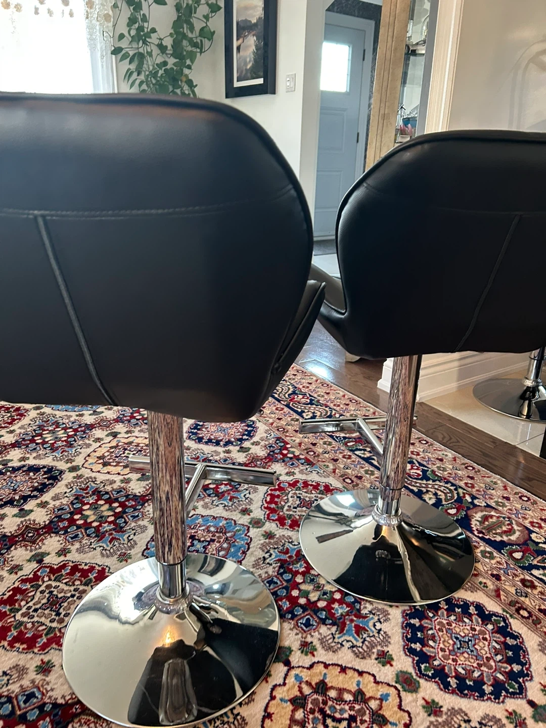 Selling a set of two stylish black bar stools. They have a sleek design and a comfortable seat, perfect for your kitchen island or home bar $30 each or two for $55