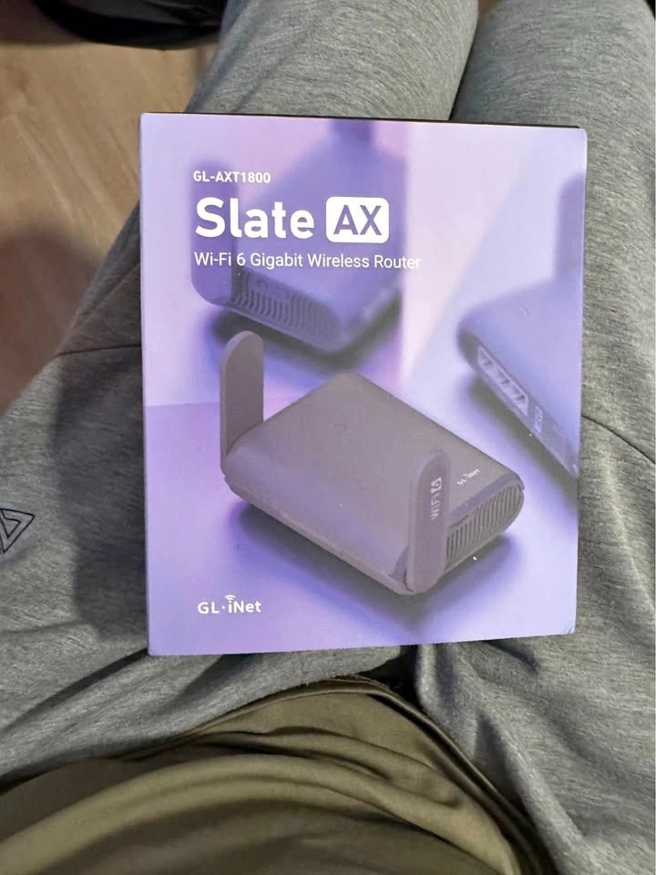 This is the Gl.Inet router GL-AXT1800 Slate AX. It's a compact and powerful travel router designed for secure and fast internet access on the go. Features include VPN support, Wi-Fi 6, and multiple ports for connectivity. Let me know if you're interested!