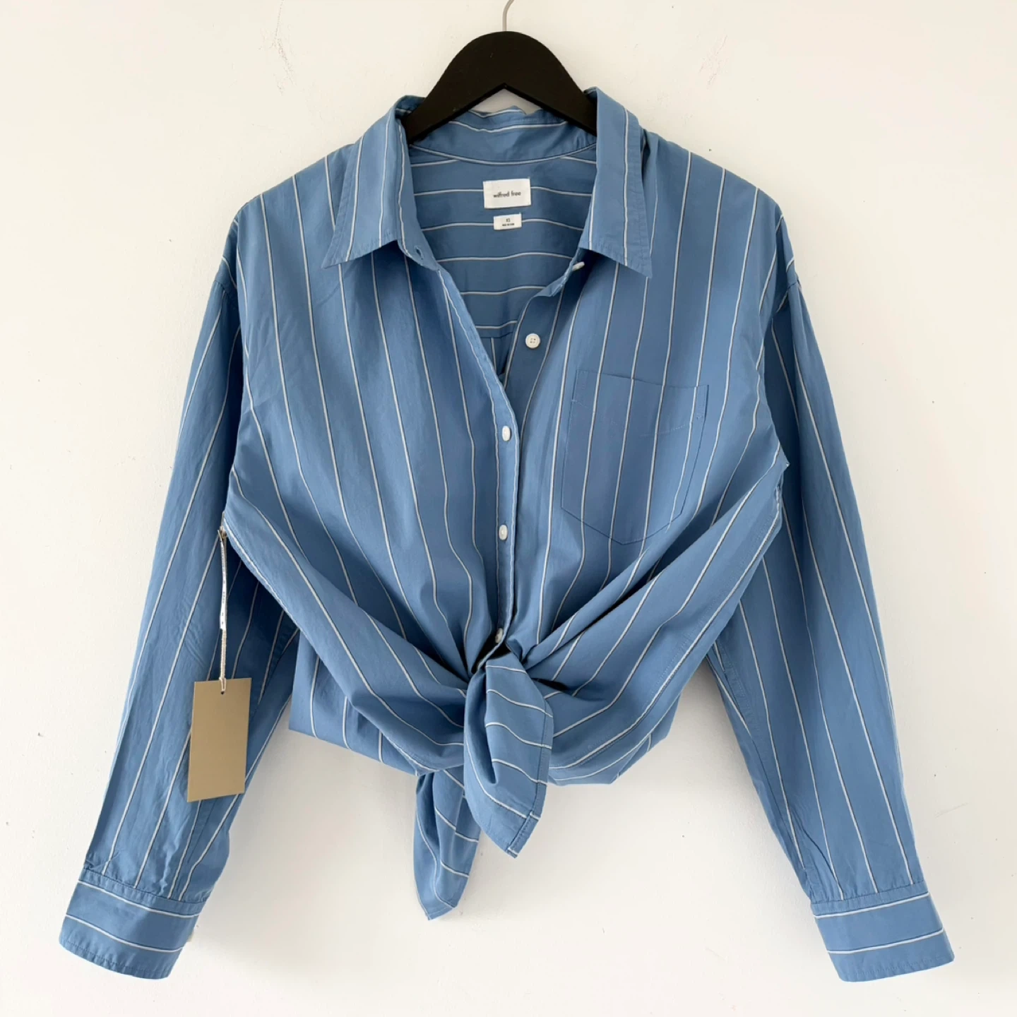 New with tag Aritzia Wilfred Free button-up shirt. Features an oversized fit, a front patch pocket and dropped shoulders. It's made from lightweight 100% cotton poplin with a smooth feel. It's crisp, breesy and drapes beautifully. In perfect condition.