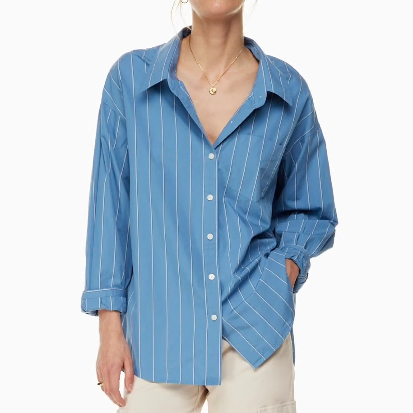 New Aritzia Wilfred Free 100% Cotton Poplin Button-Up Shirt