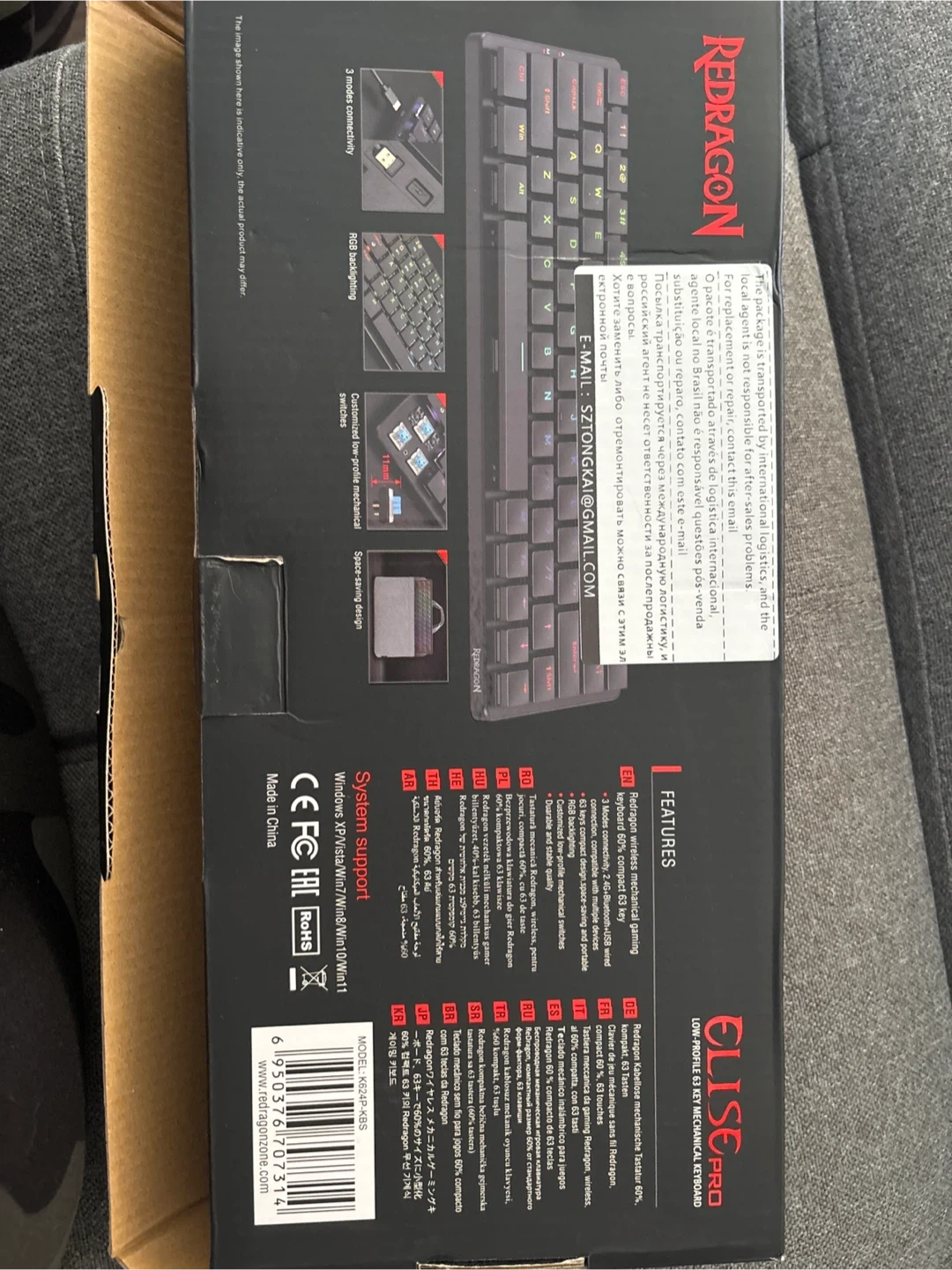 Redragon Elise Pro low profile mechanical keyboard. It offers 3 connection modes and RGB lighting. This compact 63-key keyboard provides a dust-proof experience.