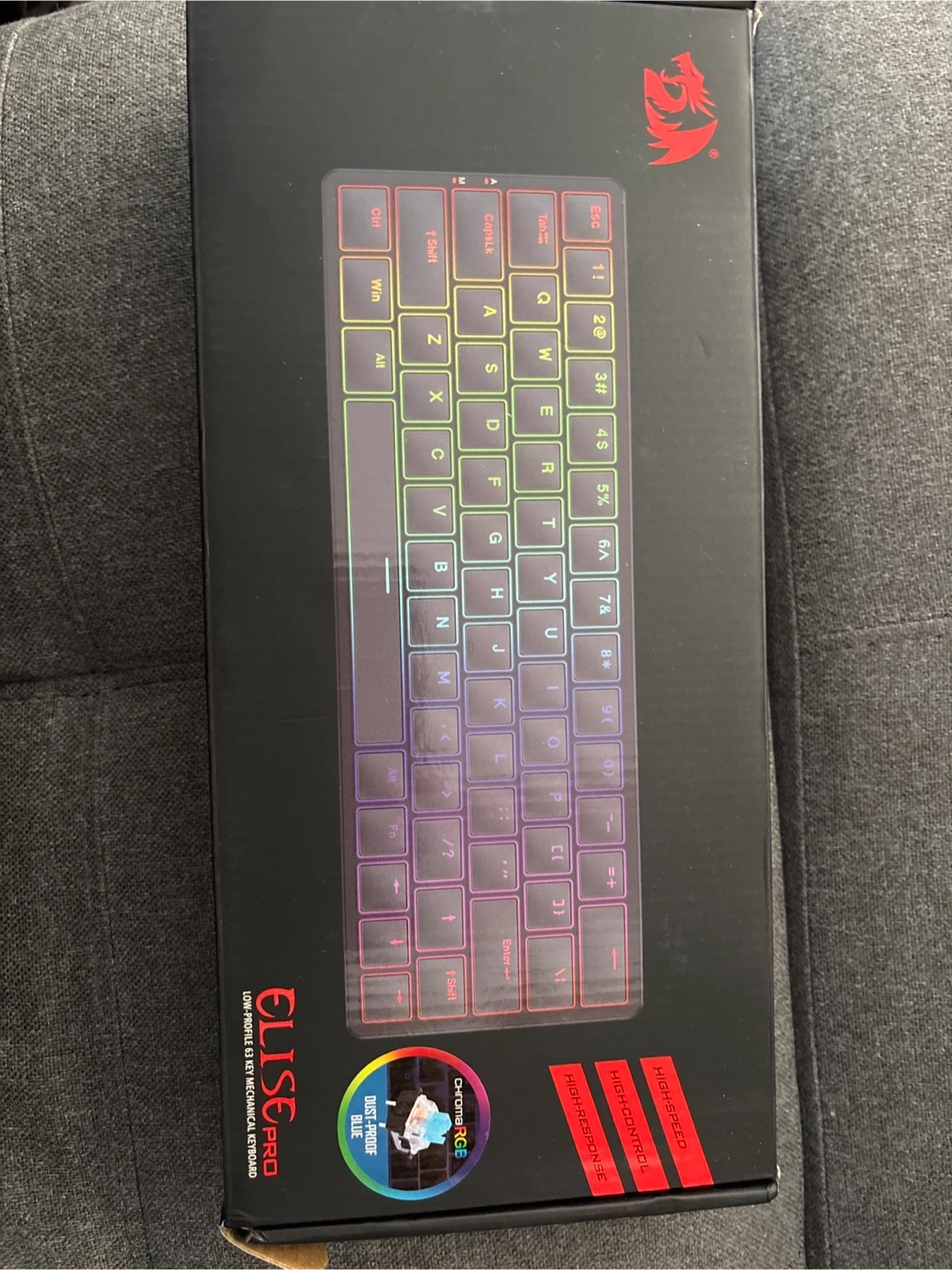 Redragon Elise Pro low profile mechanical keyboard. It offers 3 connection modes and RGB lighting. This compact 63-key keyboard provides a dust-proof experience.