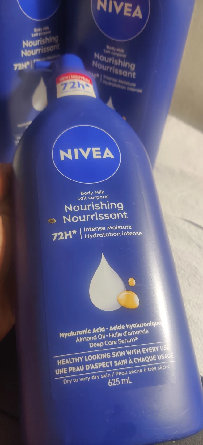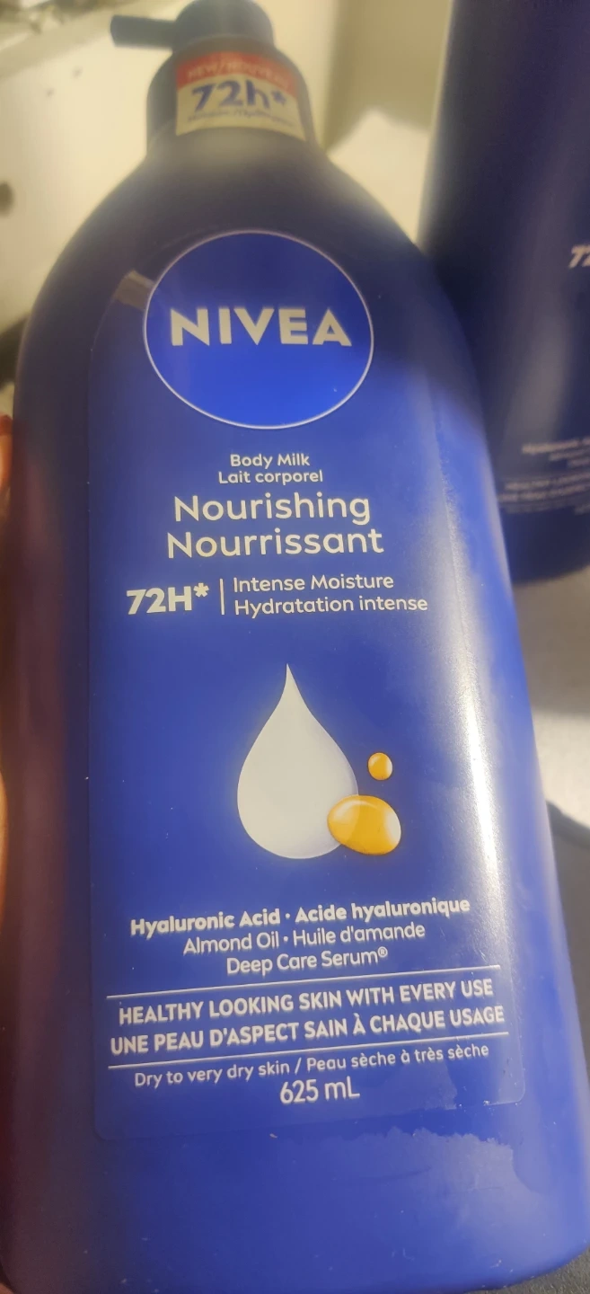 Nivea Body Milk offers 72H intense moisture for dry to very dry skin. It's formulated with Hyaluronic Acid, Almond Oil & Deep Care Serum for healthy-looking skin.