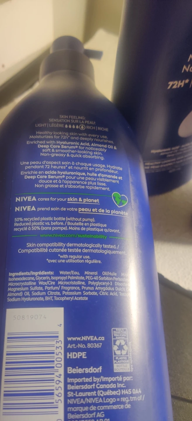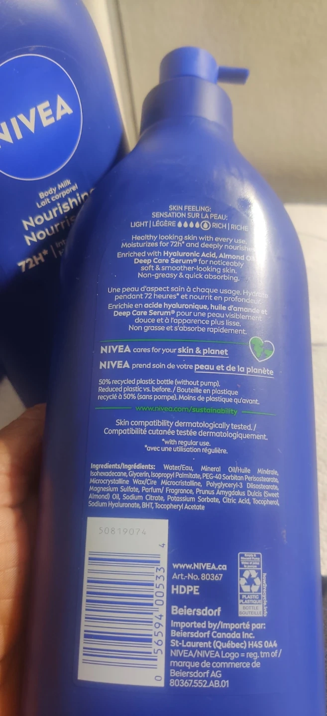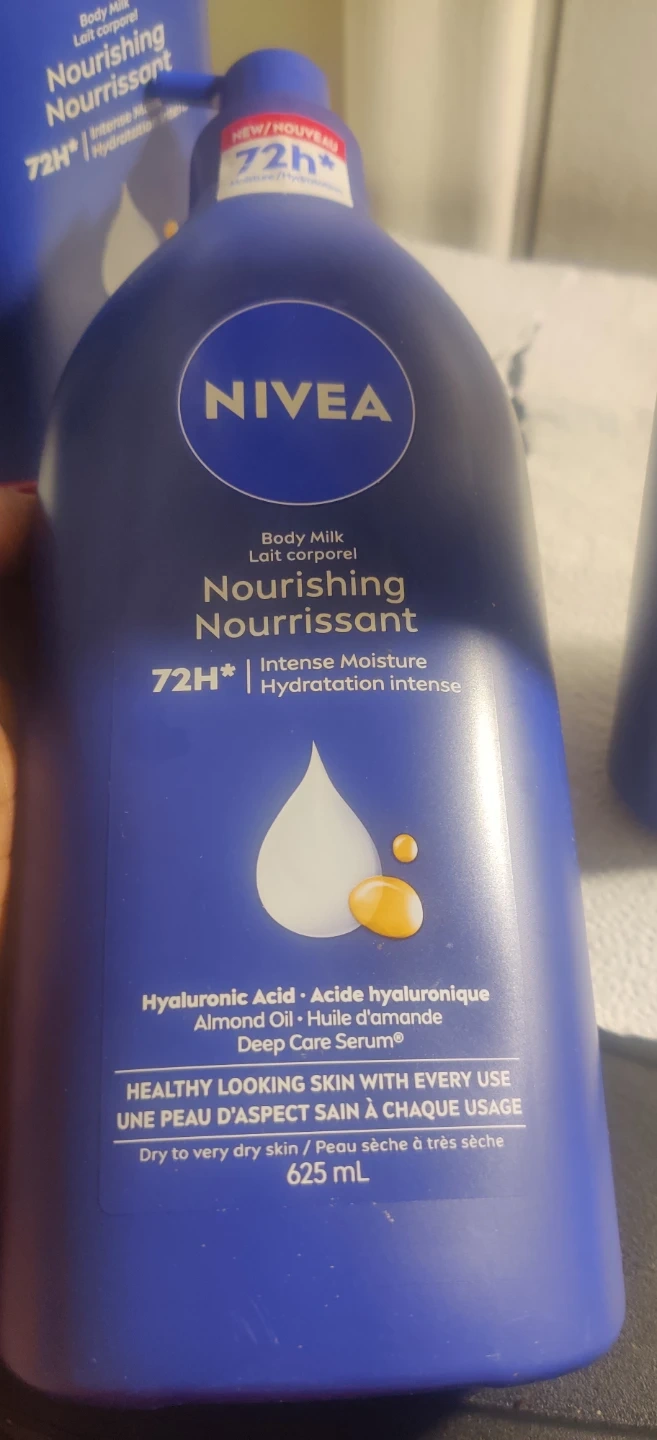 Nivea Body Milk offers 72H intense moisture for dry to very dry skin. It's formulated with Hyaluronic Acid, Almond Oil & Deep Care Serum for healthy-looking skin.