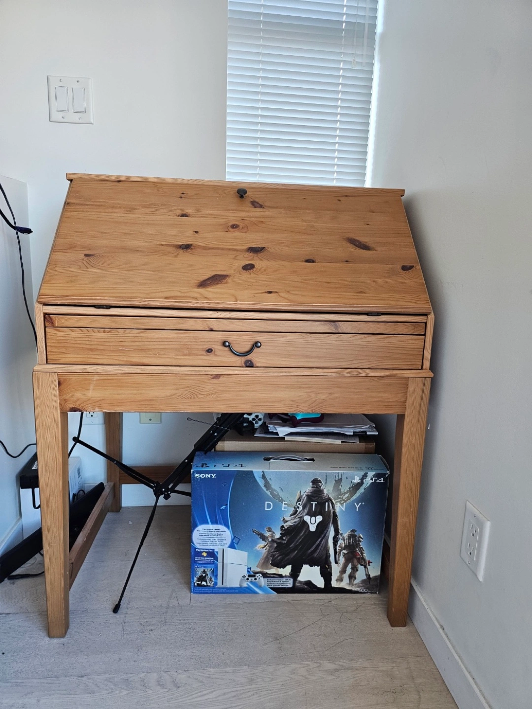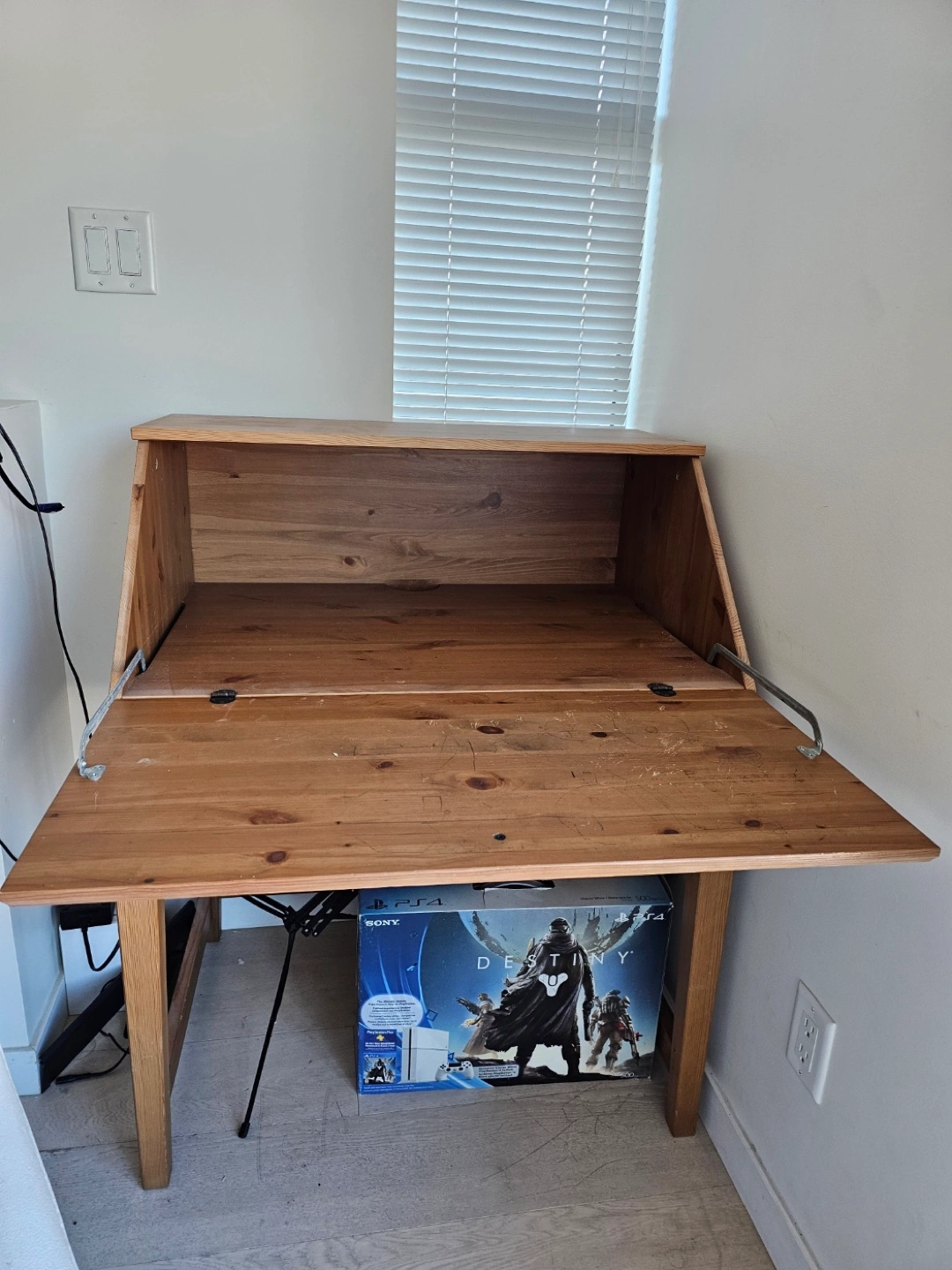 Buy & SellSolid Wood Secretary DeskSolid Wood Secretary DeskFreeSmall, solid wood secretary desk. Features a drop-down writing surface and a drawer. Some minor wear and tear. Good for small spaces.ConditionGoodWHERE TO MEETKitsilanoView MapSELLERverifiedDanKitsilano720 reviews2 chats·2 favorites·43 viewsSEND CHAT TO SELLERHi Dan! I’m interested in your listing.Hi Dan! I’m interested in your listing.Get the Karrot app to chatSign In to chat