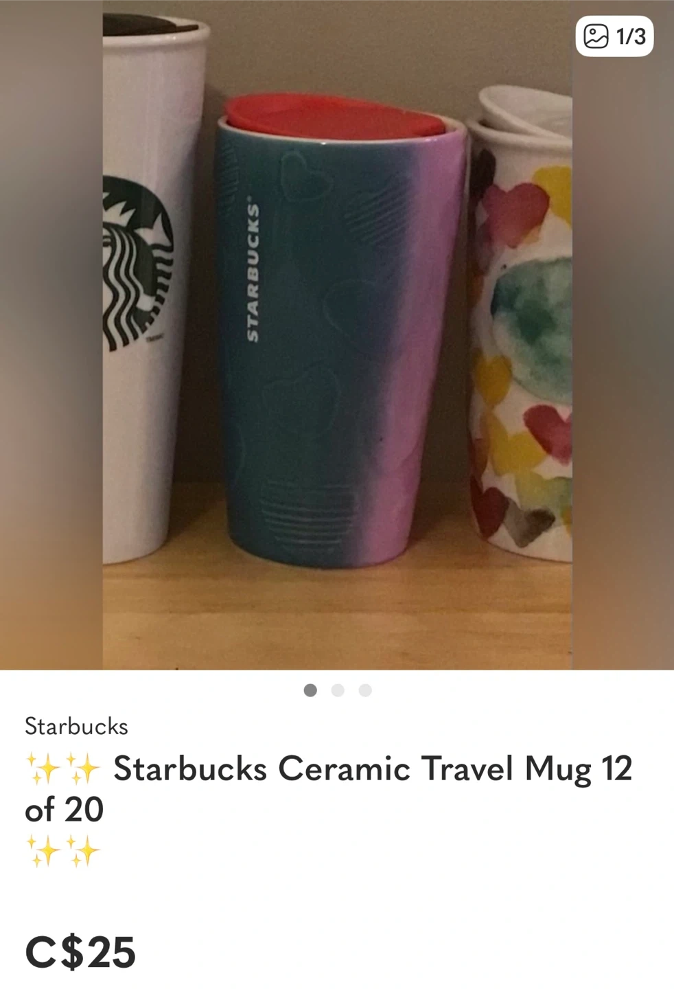 Buy & Sell✨✨Starbucks Ceramic Travel Mug 12 of 20 🏆✨✨Starbucks Ceramic Travel Mug 12 of 20 🏆$25Selling a limited edition, Starbucks travel mug. Great for keeping your drinks warm on the go! Please see my other ads for many more options 😊ConditionLike newWHERE TO MEETBunton CrescentView MapSELLERverifiedNicole WOrchard34726 reviews0 chats·0 favorites·3 viewsSEND CHAT TO SELLERHi Nicole W! I’m interested in your listing.Hi Nicole W! I’m interested in your listing.Get the Karrot app to chatSign In to chat