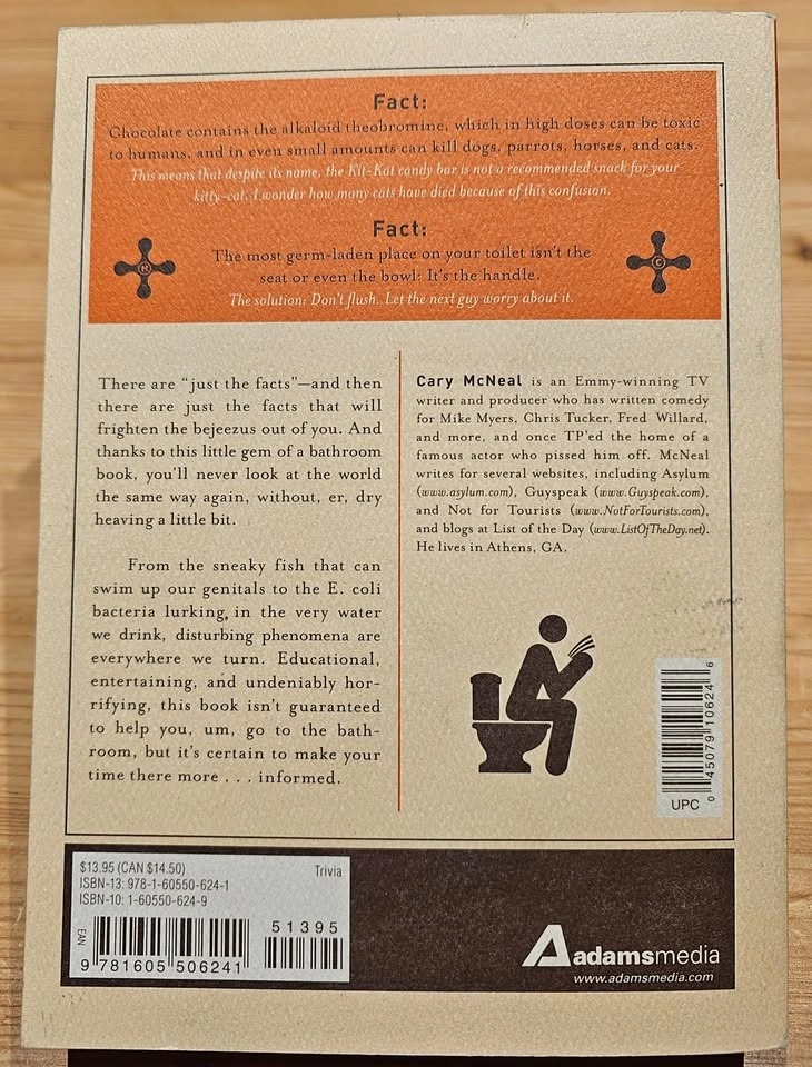 Soft cover copy of 1001 Facts that Will Scare the S#*t Out of You: The Ultimate Bathroom Reader by Carl McNeal. Adams Media, 2010. ISBN 13: 978-1-60550-624-1. This book has definitely not been read in a bathroom. Book, humour, humor, trivia.