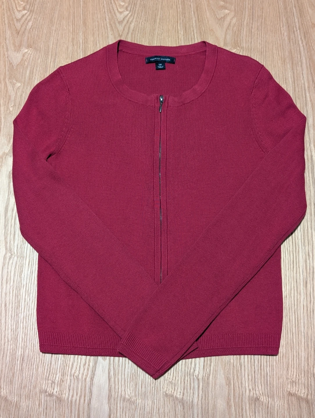 NEW womens Tommy Hilfiger zip-up cardigan in a rich berry colour, size Small.