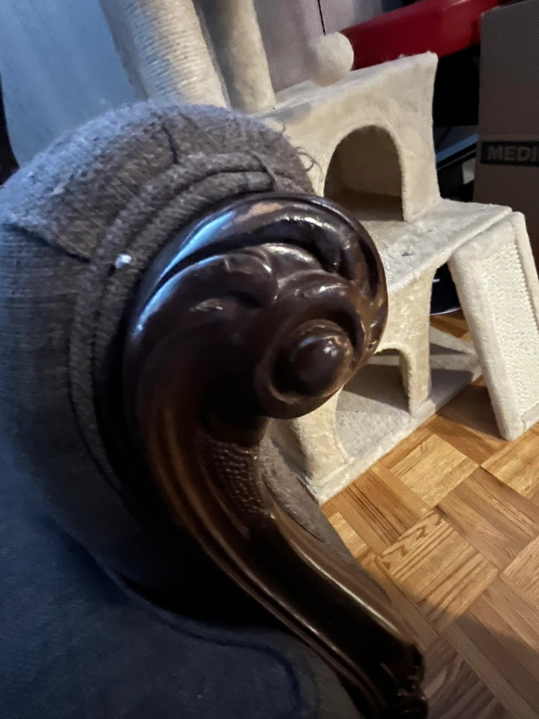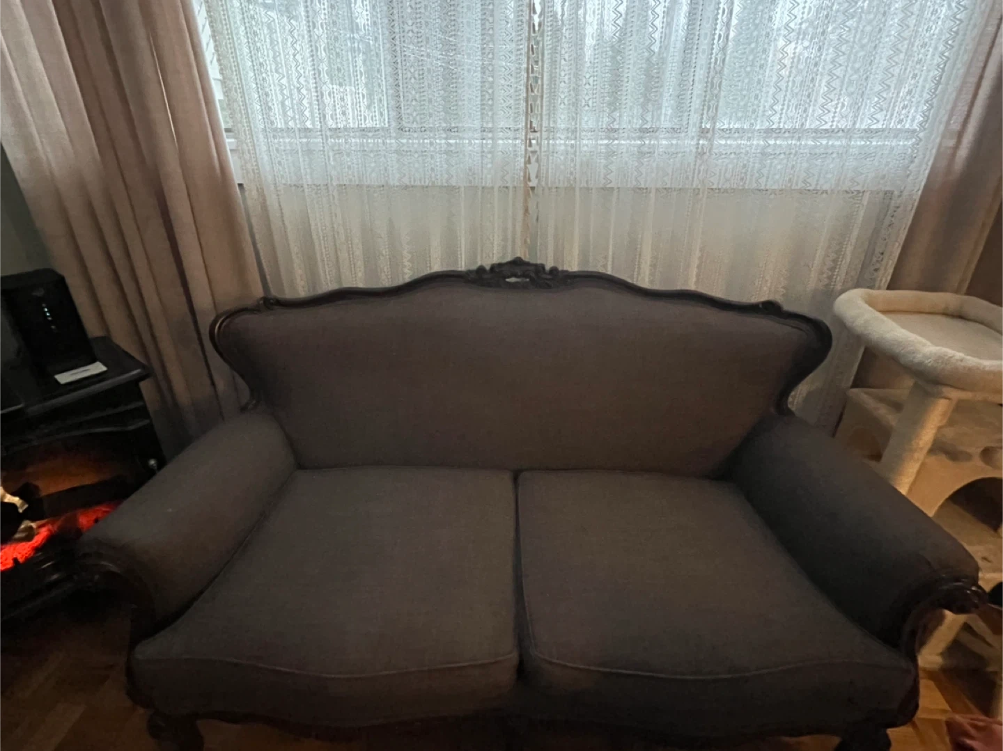 Vintage Loveseat Sofa with Carved Wood Accents