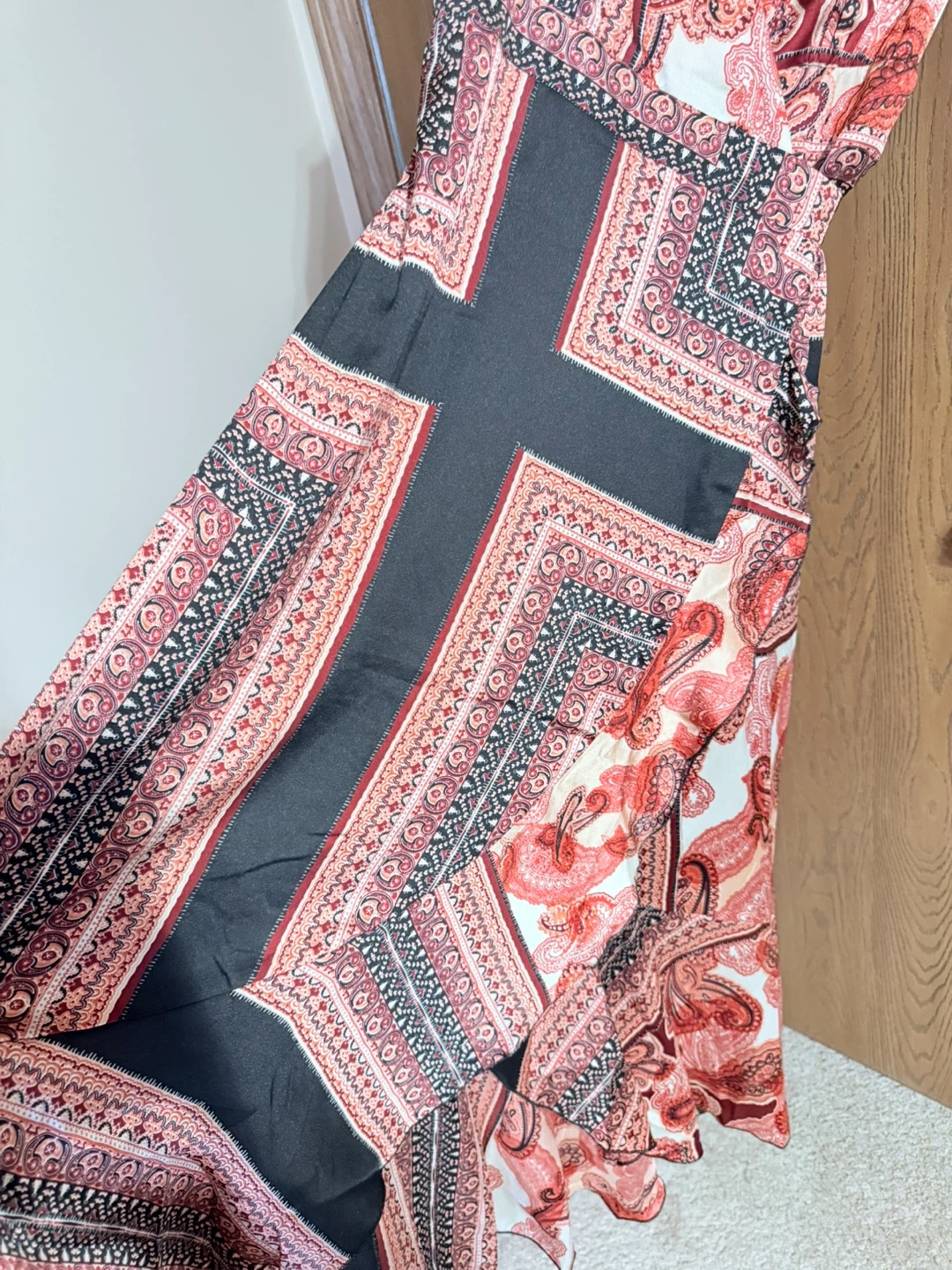 Lulus Beautiful paisley print maxi dress with a flattering wrap style and tie waist. Sleeveless design with a V-neck. Sheer outer layer with a solid black lining.