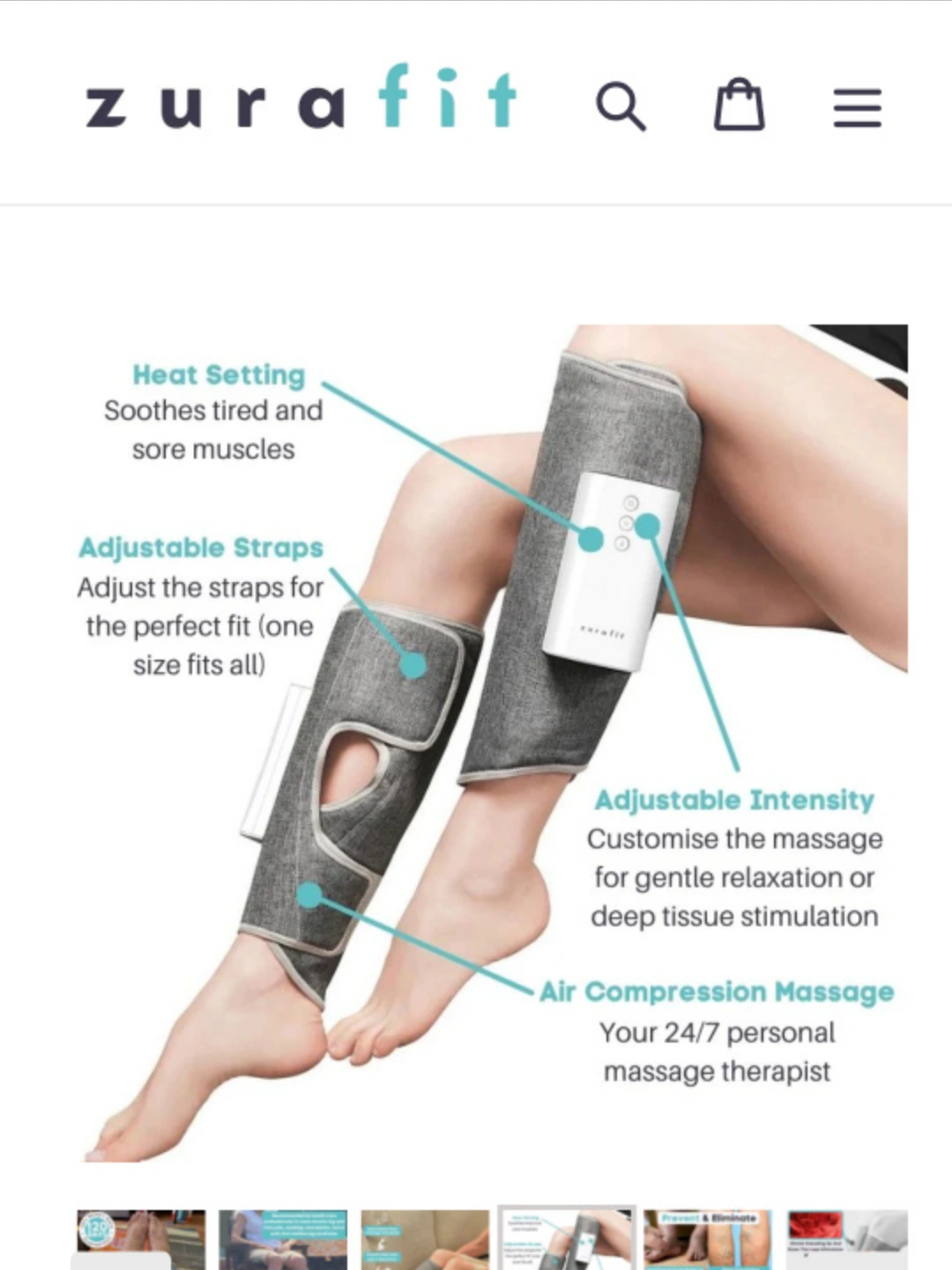 A heated leg massager with adjustable straps and intensity settings. Includes a small, portable device to provide on-the-go pain relief. Gently used